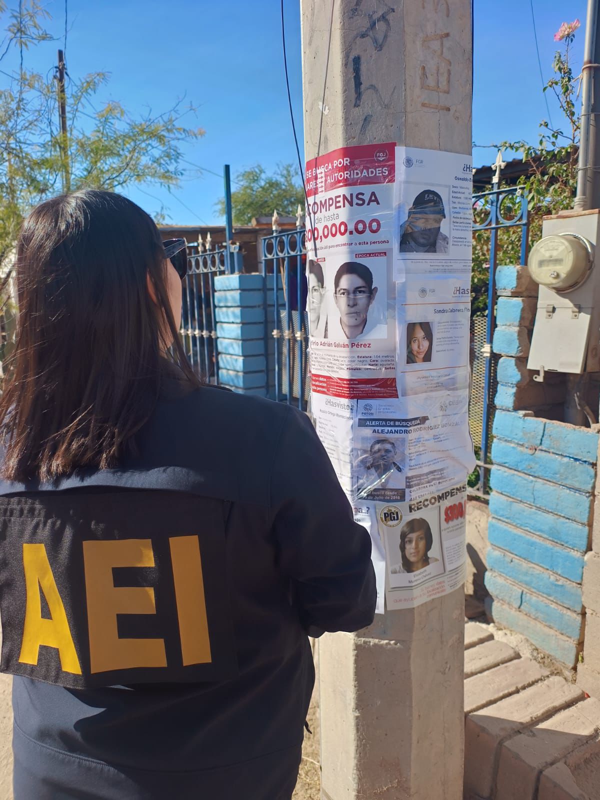 Durante las diligencias, se distribuyeron carteles en puntos estratégicos de las colonias Xochimilco, Solidaridad, Río Nuevo y Primera Sección, en lugares como el desayunador Uredi, la Casa Migrante, y el Comedor Comunitario, con el fin de recabar datos que fortalezcan las investigaciones y contribuyan al esclarecimiento de la localización de las víctimas.