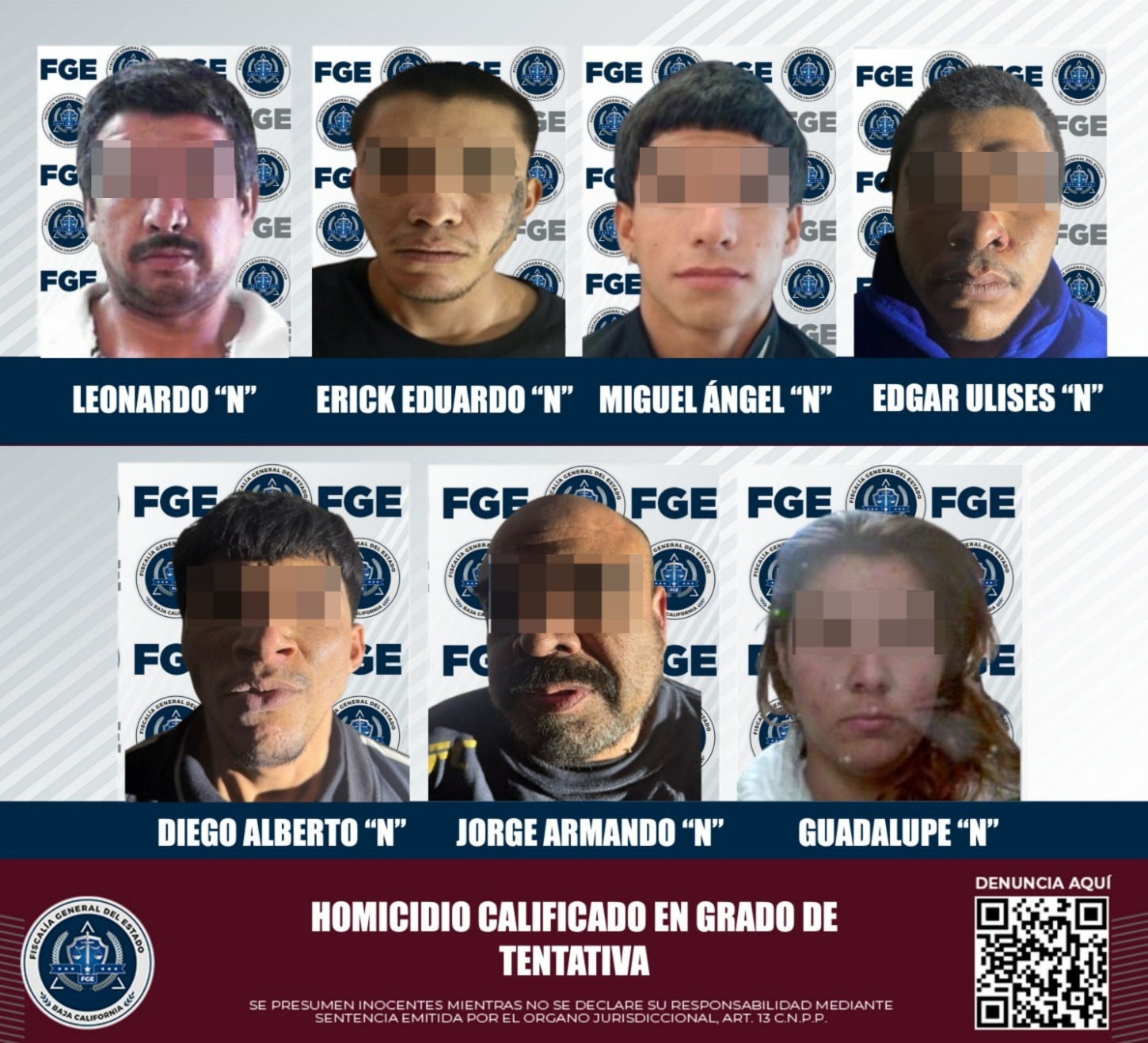 MEXICALI, BAJA CALIFORNIA. - La Fiscalía General del Estado, a través de la Fiscalía Especializada en Delitos contra la Vida, obtuvo la vinculación a proceso de seis hombres y una mujer, acusados de un ataque armado contra elementos de la Agencia Estatal de Investigación (AEI), la Guardia Nacional y la Policía Estatal de Seguridad Pública, en un enfrentamiento ocurrido la madrugada del 31 de enero en el fraccionamiento ubicado al oriente de la ciudad.