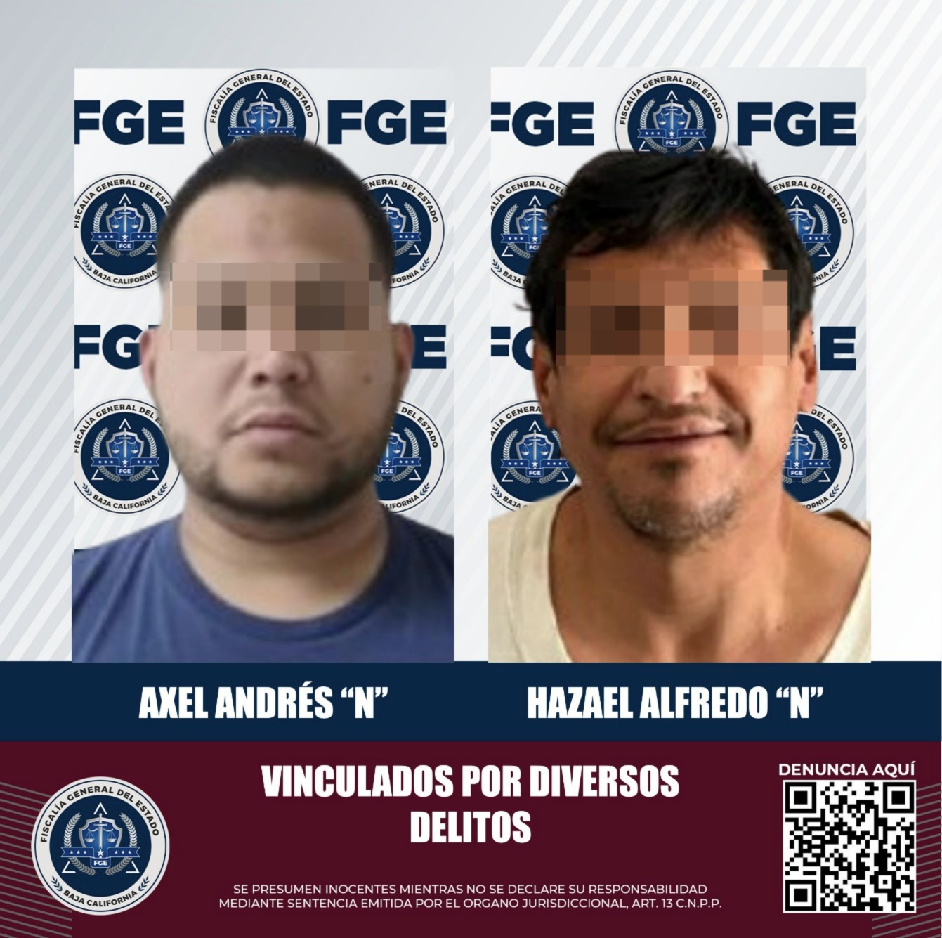 MEXICALI, BAJA CALIFORNIA. - La Fiscalía Regional de Mexicali a través de la Unidad de Investigación de Delitos contra Personas y su Libertad, obtuvo la vinculación a proceso en contra de dos sujetos, acusados por los delitos de lesiones cometidas adultos mayores y amenazas, así como disparo de arma de fuego sobre persona, respectivamente.