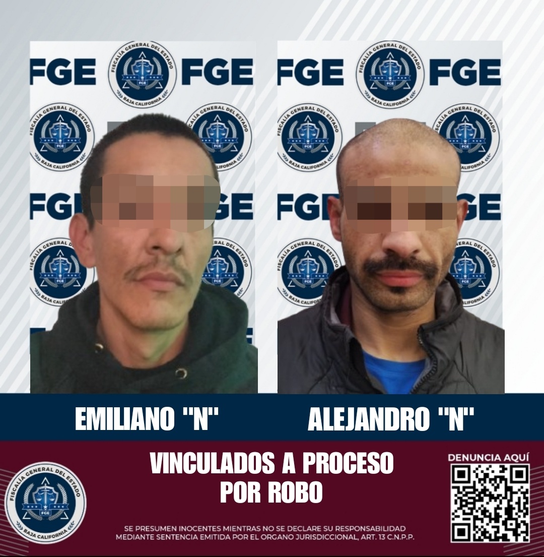 MEXICALI, BAJA CALIFORNIA. - La Fiscalía General del Estado (FGE), a través de las Unidades de Investigación con Detenidos Poniente y Oriente, logró la vinculación a proceso de dos individuos acusados de cometer robos en establecimientos comerciales. En ambos casos, se obtuvo la imposición de la medida cautelar de prisión preventiva justificada.
