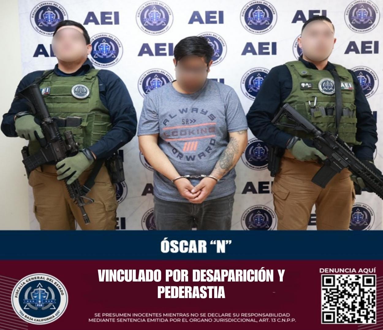 En cumplimiento de las instrucciones de la Fiscal General del Estado de Baja California, Dra. Ma. Elena Andrade Ramírez, de proteger la vida y la integridad de niñas, niños y adolescentes, se logró obtener la vinculación a proceso de Óscar “N”, subsistiendo la medida cautelar de prisión preventiva oficiosa y justificada, por los delitos por los delitos de desaparición cometida por particulares agravado y pederastia cometidos en agravio de la adolescente víctima de 15 años de edad.