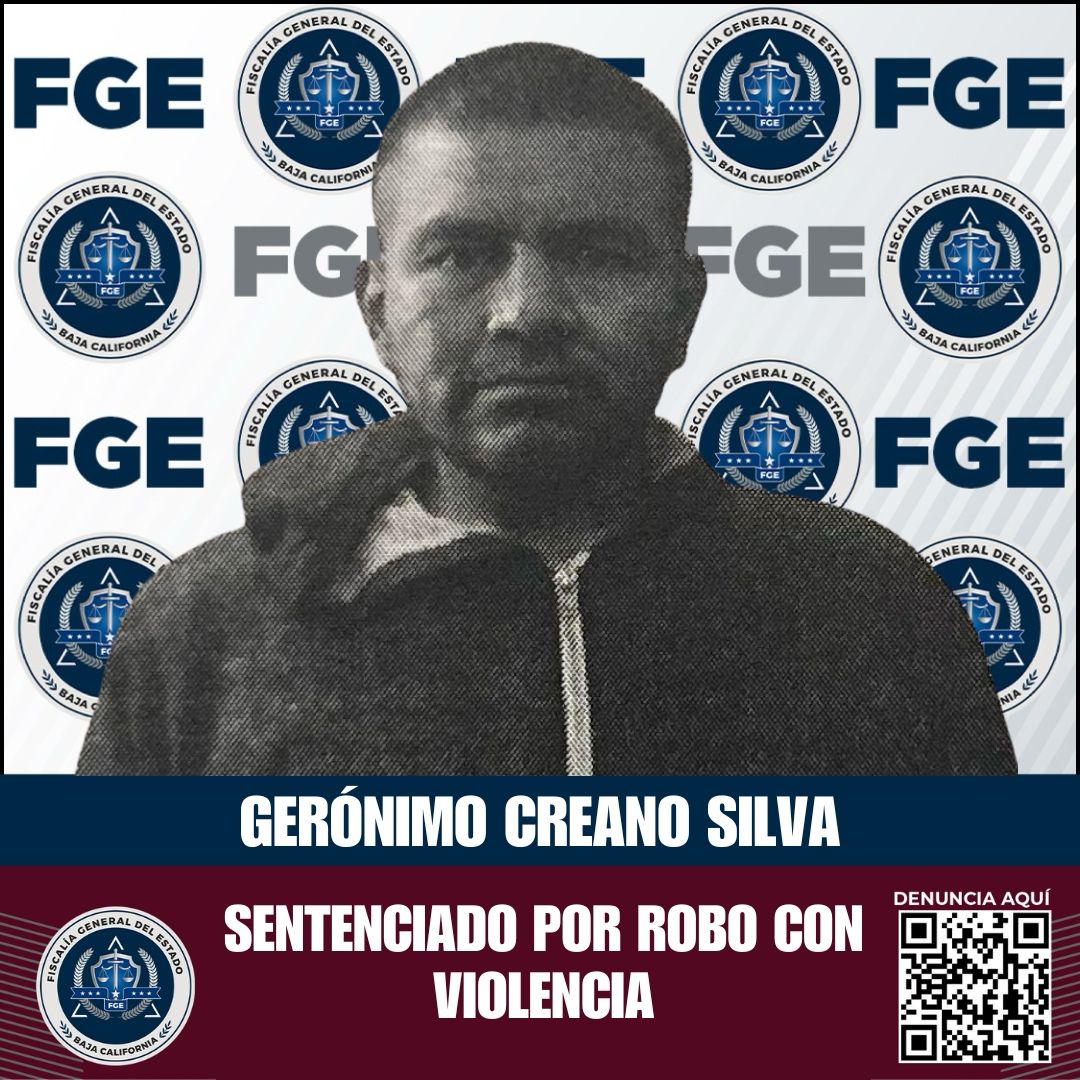 ENSENADA, BAJA CALIFORNIA. - La Fiscalía Regional de Ensenada ha obtenido una sentencia de 7 años de prisión contra Gerónimo Creano Silva, quien es culpable por el delito de robo con violencia en un establecimiento comercial de la localidad.