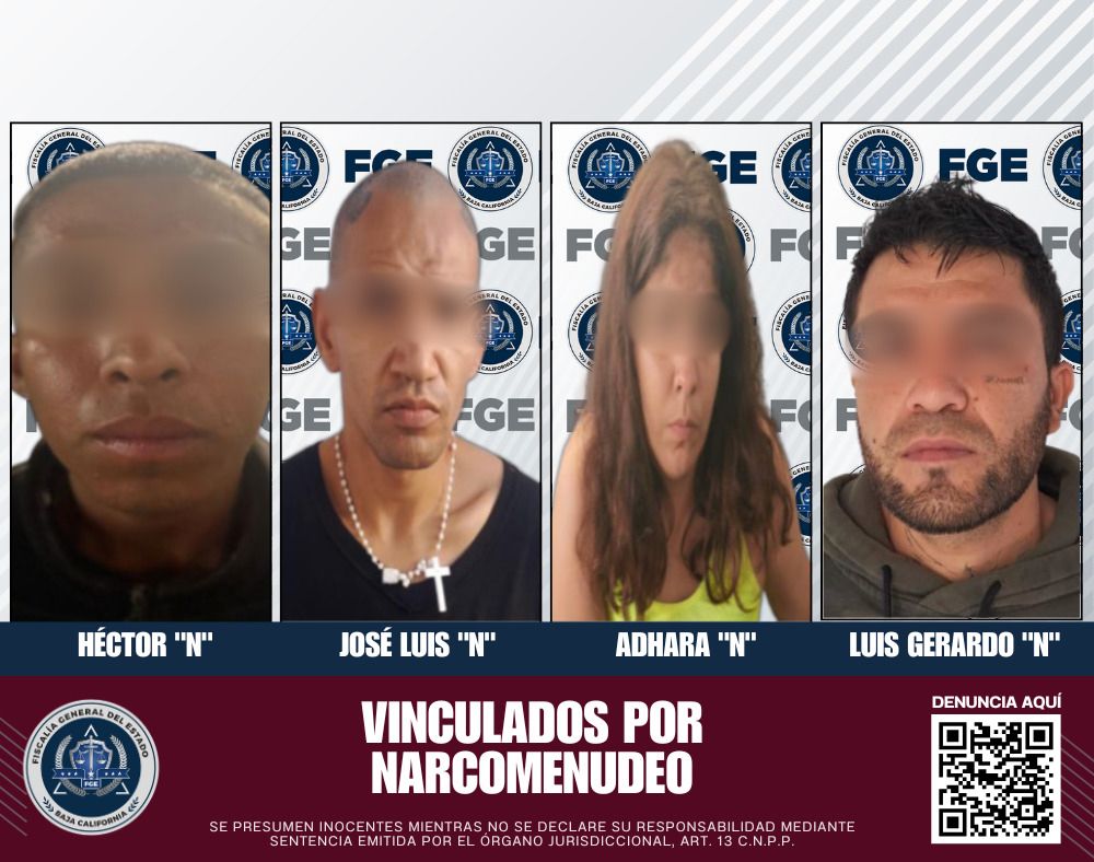 ENSENADA, BAJA CALIFORNIA. - La Fiscalía General del Estado (FGE), a través de la Fiscalía Especializada en Narcomenudeo, logró la vinculación a proceso de cuatro individuos por delitos contra la salud en su modalidad de narcomenudeo.
