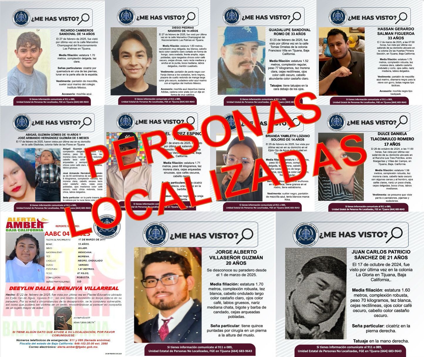 TIJUANA, BAJA CALIFORNIA. - Agentes Estatales de Investigación de la Fiscalía General del Estado localizaron a doce personas que habían sido reportadas como desaparecidas. Entre ellas se encuentran cuatro mujeres y ocho hombres, quienes fueron encontrados en buen estado de salud.