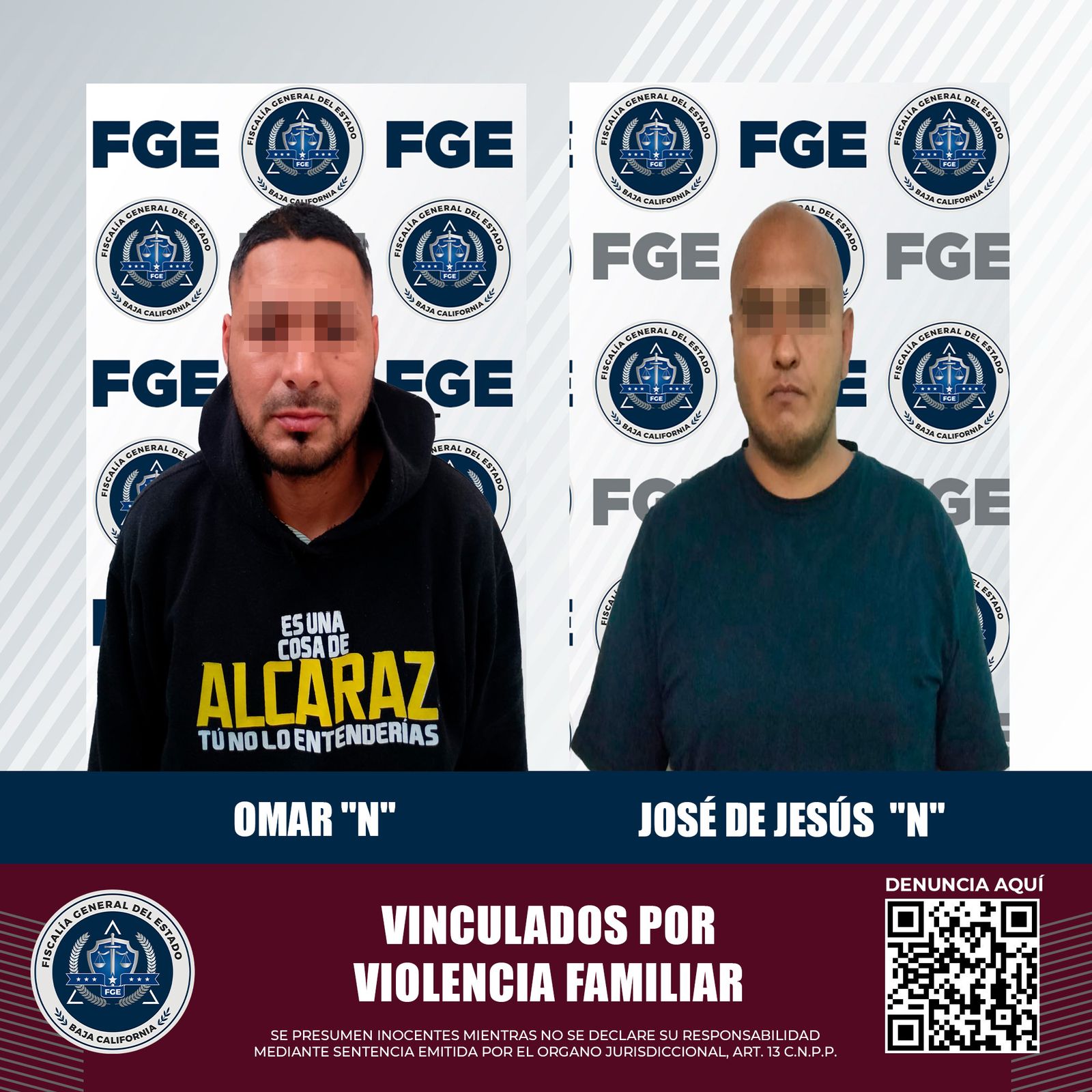 MEXICALI, BAJA CALIFORNIA. - Dos hombres acusados de agredir a sus familiares, quedaron bajo proceso penal, mediante los elementos de prueba presentados por la Fiscalía Regional de Mexicali, a través de las Unidades de Investigación con Detenidos Oriente y Detenidos Poniente.