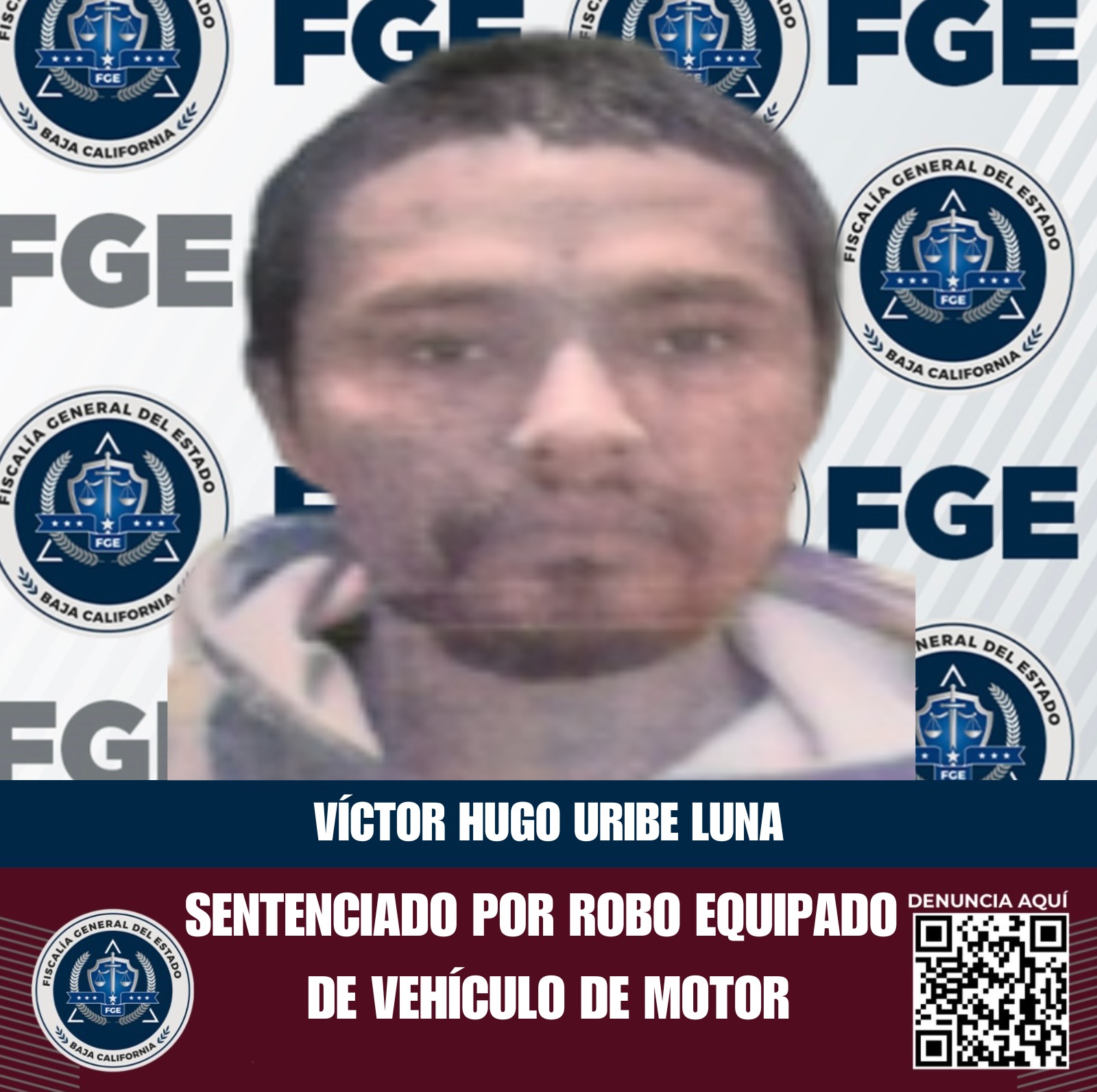 TIJUANA, BAJA CALIFORNIA. - La Fiscalía General del Estado de Baja California (FGEBC), a través de la Fiscalía Regional de Tijuana, informa sobre una nueva sentencia condenatoria lograda por la Unidad de Investigación de Robo de Vehículos, resultado de las acciones permanentes para combatir los delitos que afectan el patrimonio de las y los ciudadanos.