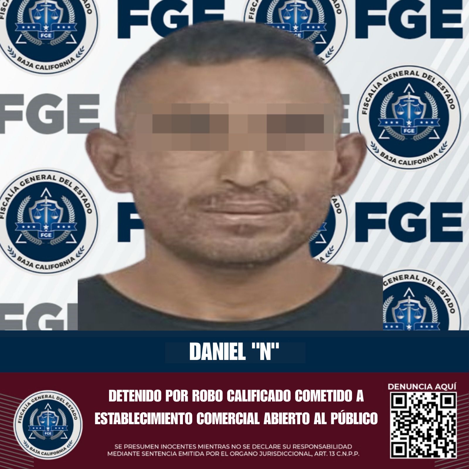 TECATE, BAJA CALIFORNIA. - La Fiscalía General del Estado, a través de la Fiscalía Regional de Tecate y la Unidad de Investigación de Delitos con Detenido, informa sobre la cumplimentación de una orden de aprehensión en contra de Daniel “N” por su presunta responsabilidad en el delito de robo calificado cometido en establecimiento comercial abierto al público.