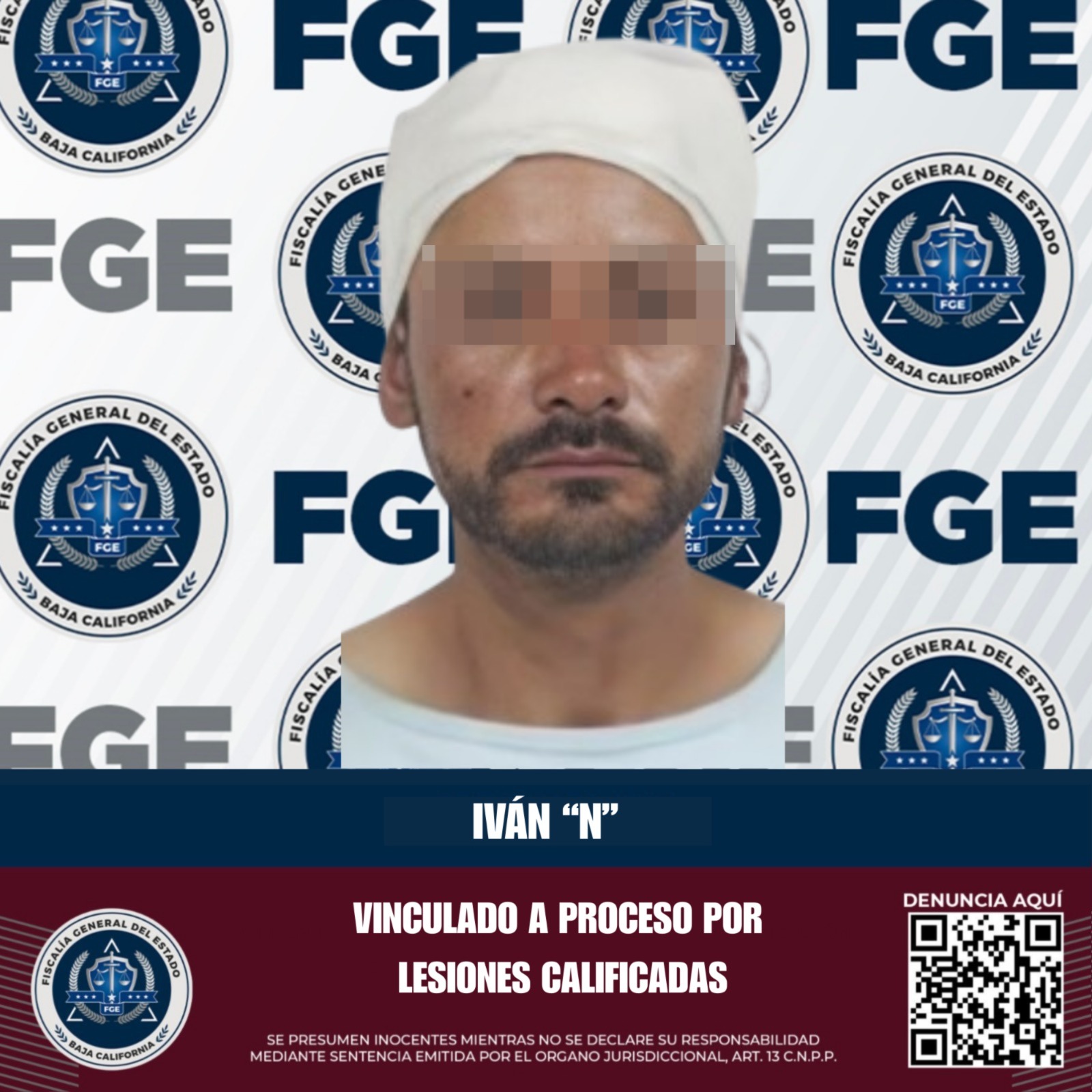 TECATE. BAJA CALIFORNIA. - La Fiscalía Regional de Tecate, a través de la Unidad de Investigación de Delitos con Detenido, obtuvo la vinculación a proceso de Iván “N” por su presunta responsabilidad en el delito de lesiones calificadas.