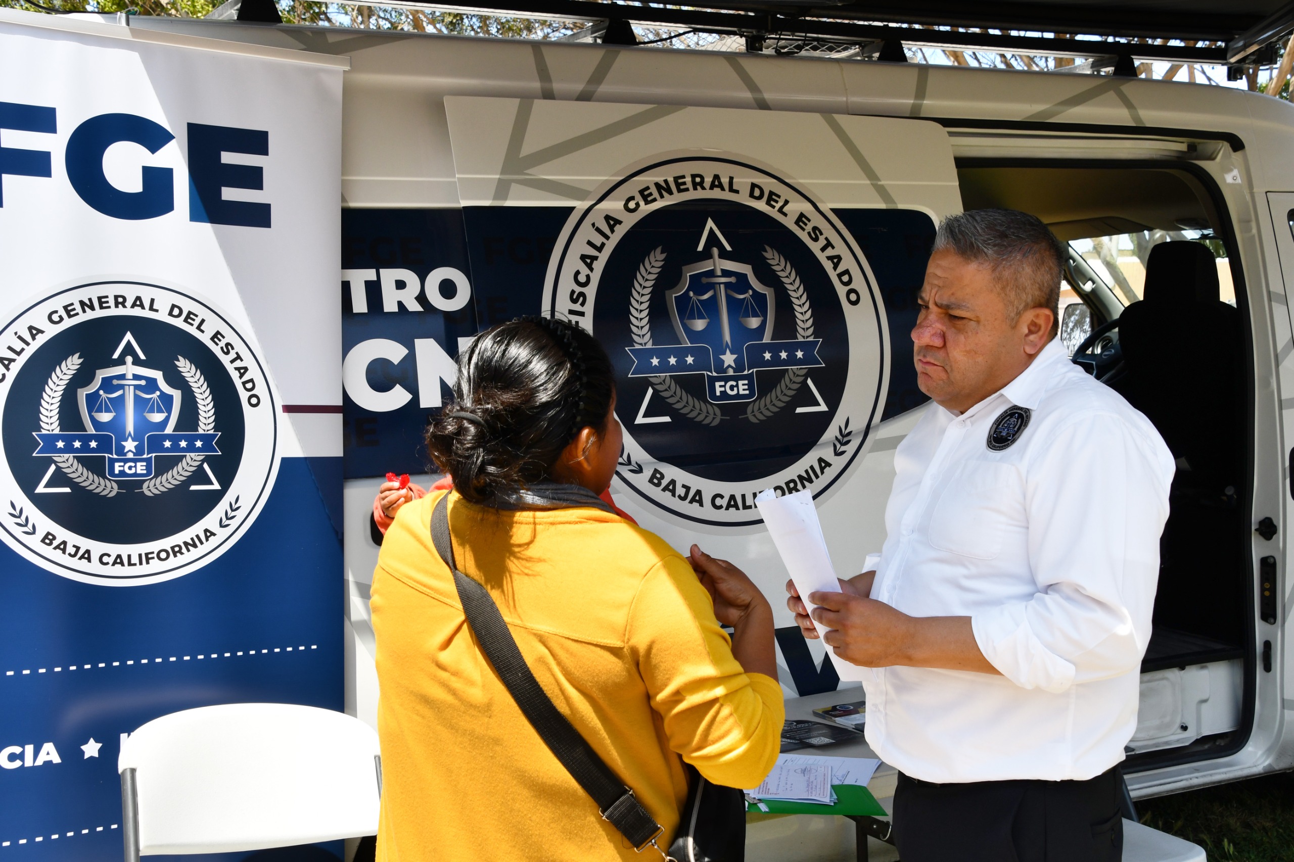 ENSENADA, BAJA CALIFORNIA. - La Fiscalía General del Estado participó en la jornada “Mujer Segura”, realizada en el parque Benito Juárez de la delegación Maneadero, convocada por el Instituto para la Mujer del Estado de Baja California, como parte de los esfuerzos para prevenir y atender la violencia de género.