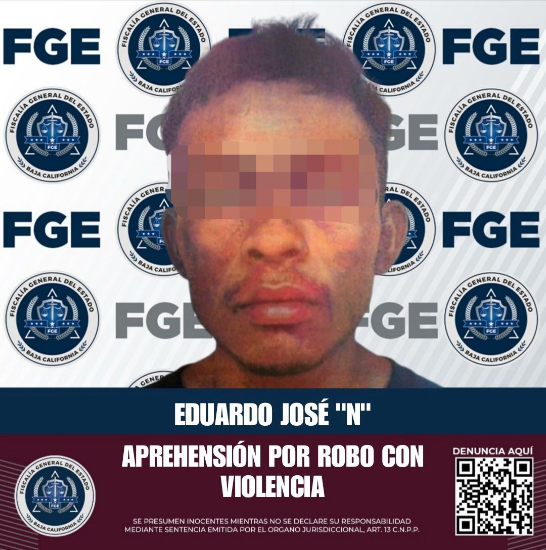 TECATE, BAJA CALIFORNIA. - La Fiscalía Regional de Tecate, a través de la Agencia Estatal de Investigación (AEI), ha realizado la captura de un individuo implicado en un delito de robo con violencia, quien contaba con una orden de aprehensión en su contra.