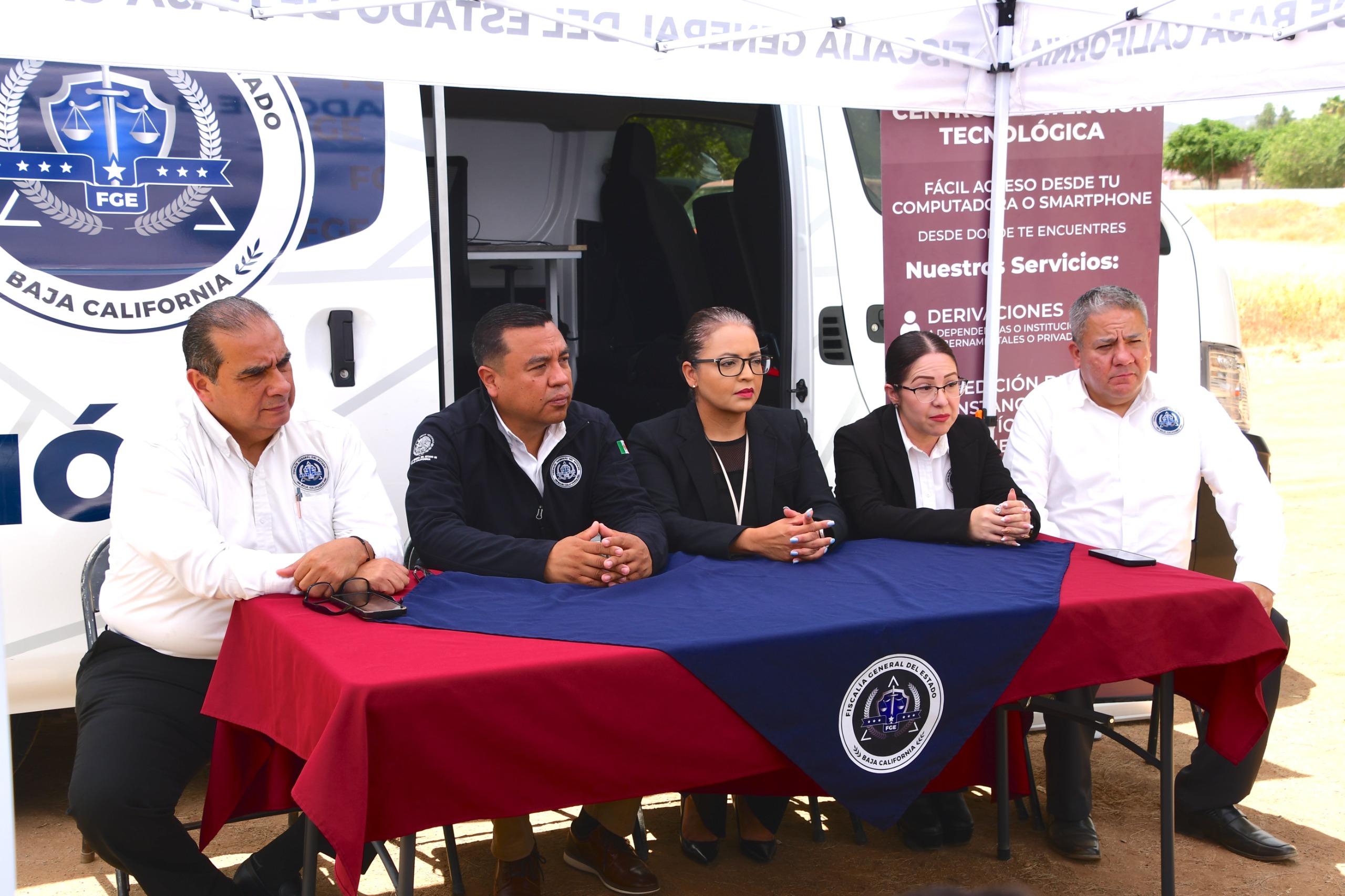 Entre los funcionarios presentes estuvieron: el Fiscal Regional de Ensenada, Miguel Ángel Pérez Rojas; el director estatal del programa Fiscal Enlace Contigo, Benito Velázquez Hernández; la subdirectora de la zona sur de Atención Ciudadana y Justicia Alternativa Penal, Julieta Elena Castañeda Ceseña; el Fiscal Enlace en Ensenada, Sergio Pineda Ortiz; y la encargada del Centro de Atención Tecnológica, Claudia Páez.