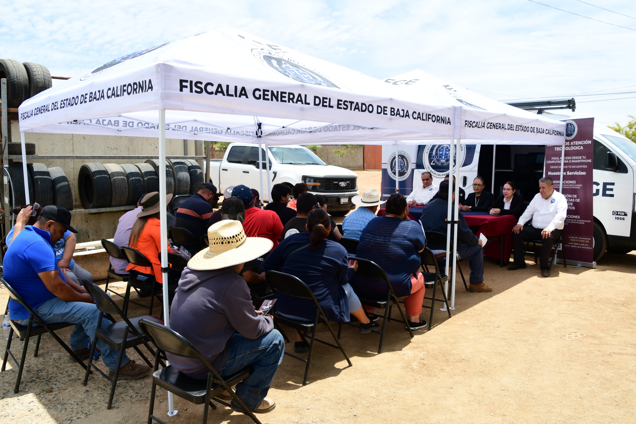 ENSENADA, BAJA CALIFORNIA. - Como parte de las acciones del programa “Fiscal Enlace Contigo”, la Fiscalía General del Estado acercó sus servicios de procuración de justicia a la comunidad de San Vicente, facilitando atención directa a las y los ciudadanos en esta delegación de Ensenada.