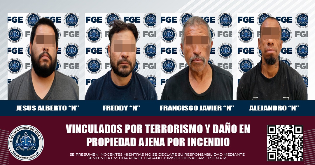 MEXICALI, BAJA CALIFORNIA. - La Fiscalía Regional de Mexicali, por conducto de la unidad de investigación de Detenidos Poniente, logró con base en el trabajo de investigación, la vinculación a proceso de cuatro sujetos acusados provocar un incendio en un restaurante de la colonia Alamitos, ocurrido el pasado 23 de mayo.