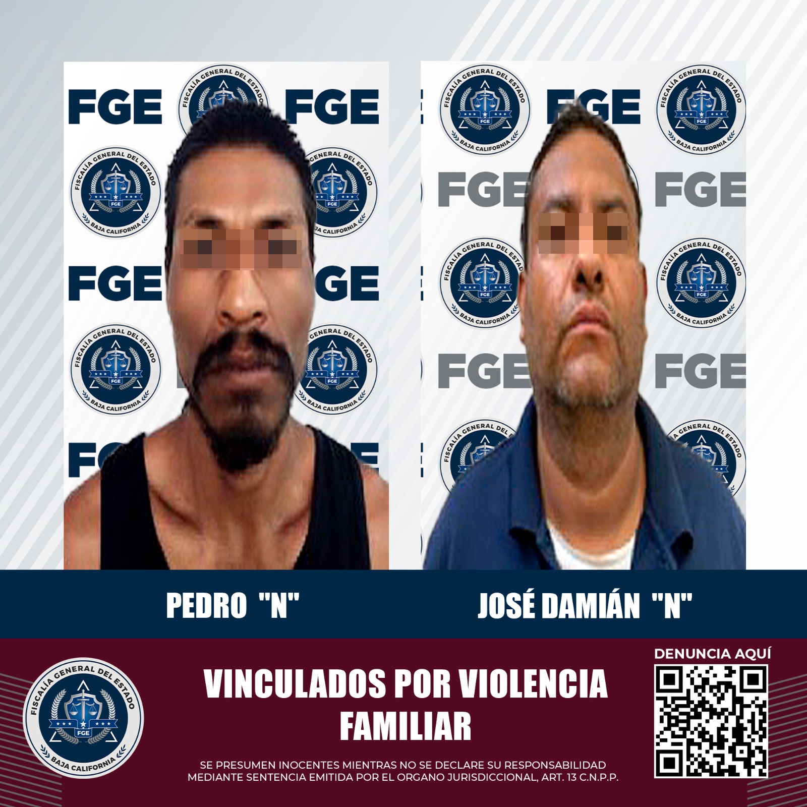 MEXICALI, BAJA CALIFORNIA. - La Fiscalía Regional de Mexicali, a través del trabajo coordinado de las Unidades de Investigación con Detenidos Oriente y Poniente, logró que dos personas imputadas por agredir a integrantes de su familia fueran vinculadas a proceso.