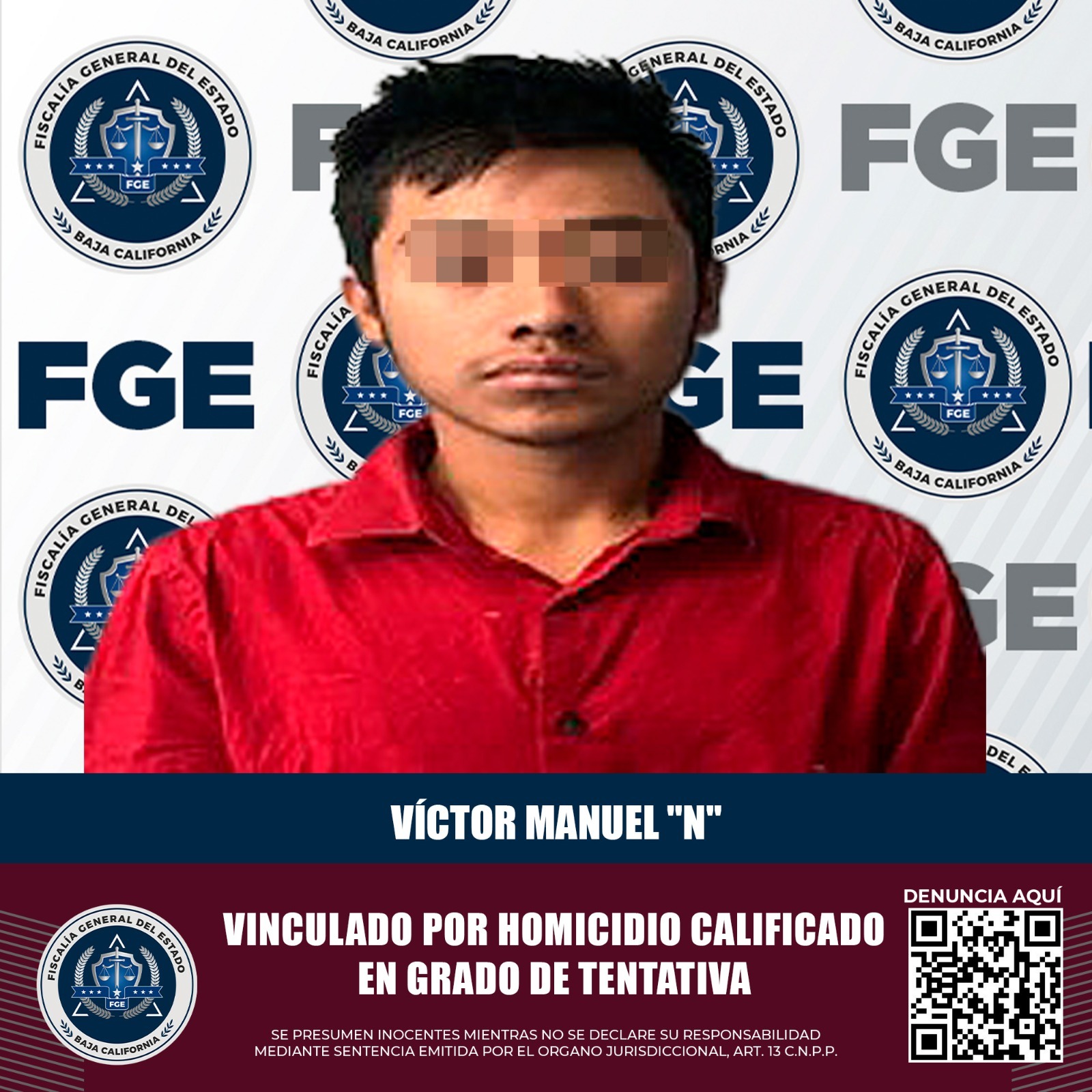 MEXICALI, BAJA CALIFORNIA. - La Fiscalía Regional de Mexicali, a través de la Unidad de Investigación de Delitos Foránea Guadalupe Victoria, obtuvo la vinculación a proceso de Víctor Manuel “N”, por su presunta participación en el delito de homicidio calificado con ventaja en grado de tentativa.