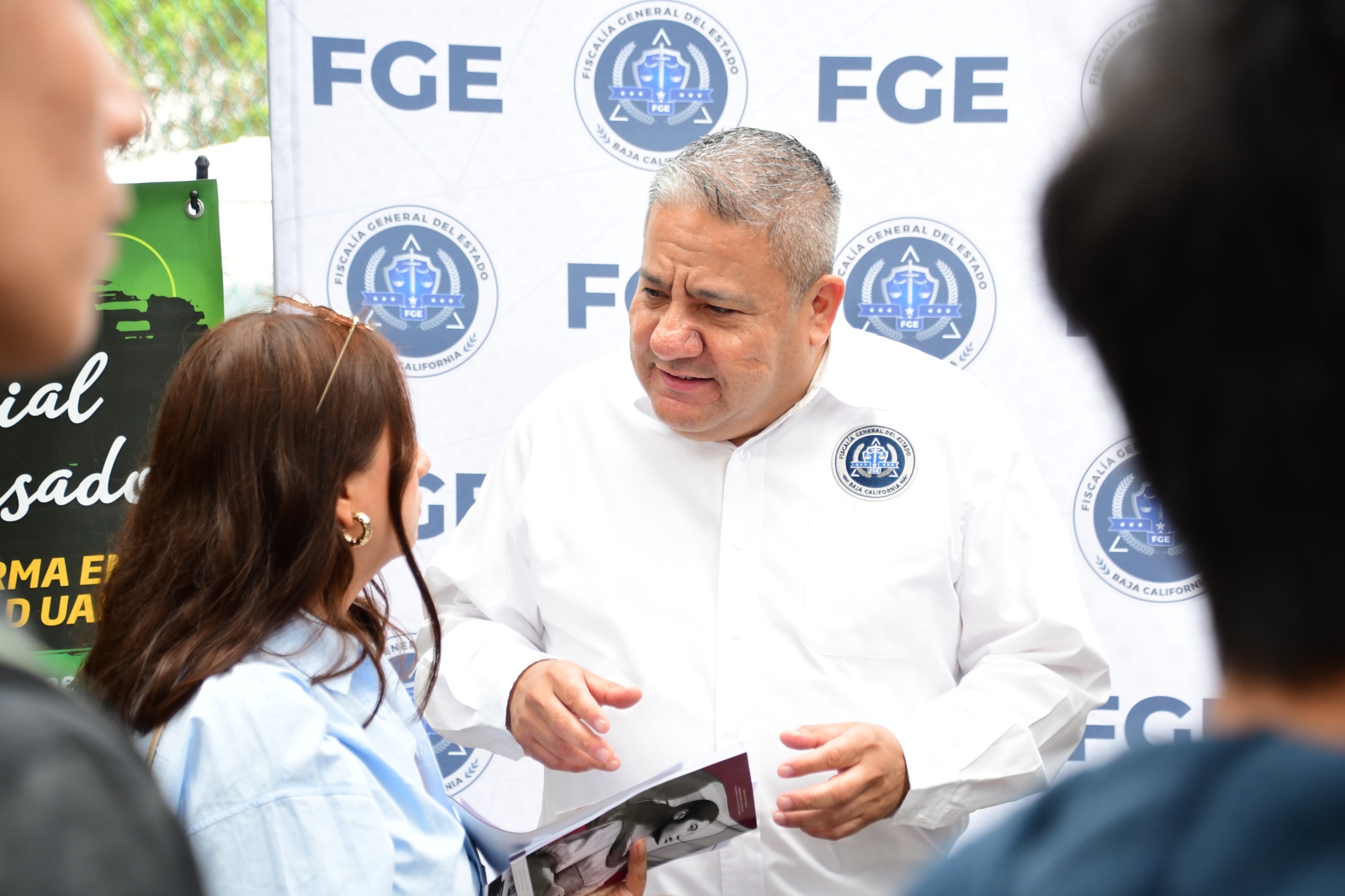 ENSENADA, BAJA CALIFORNIA. - En cumplimiento de una de las directrices fundamentales de la Fiscal General del Estado, Dra. Ma. Elena Andrade Ramírez, enfocada en mantener un contacto directo con la comunidad y promover una Fiscalía incluyente y cercana, la institución participó activamente en la Feria del Empleo para la Inclusión Laboral “Ensenada en Diversidad y Orgullo”, realizada este 9 de junio en los patios del Centro Social, Cívico y Cultural Riviera.