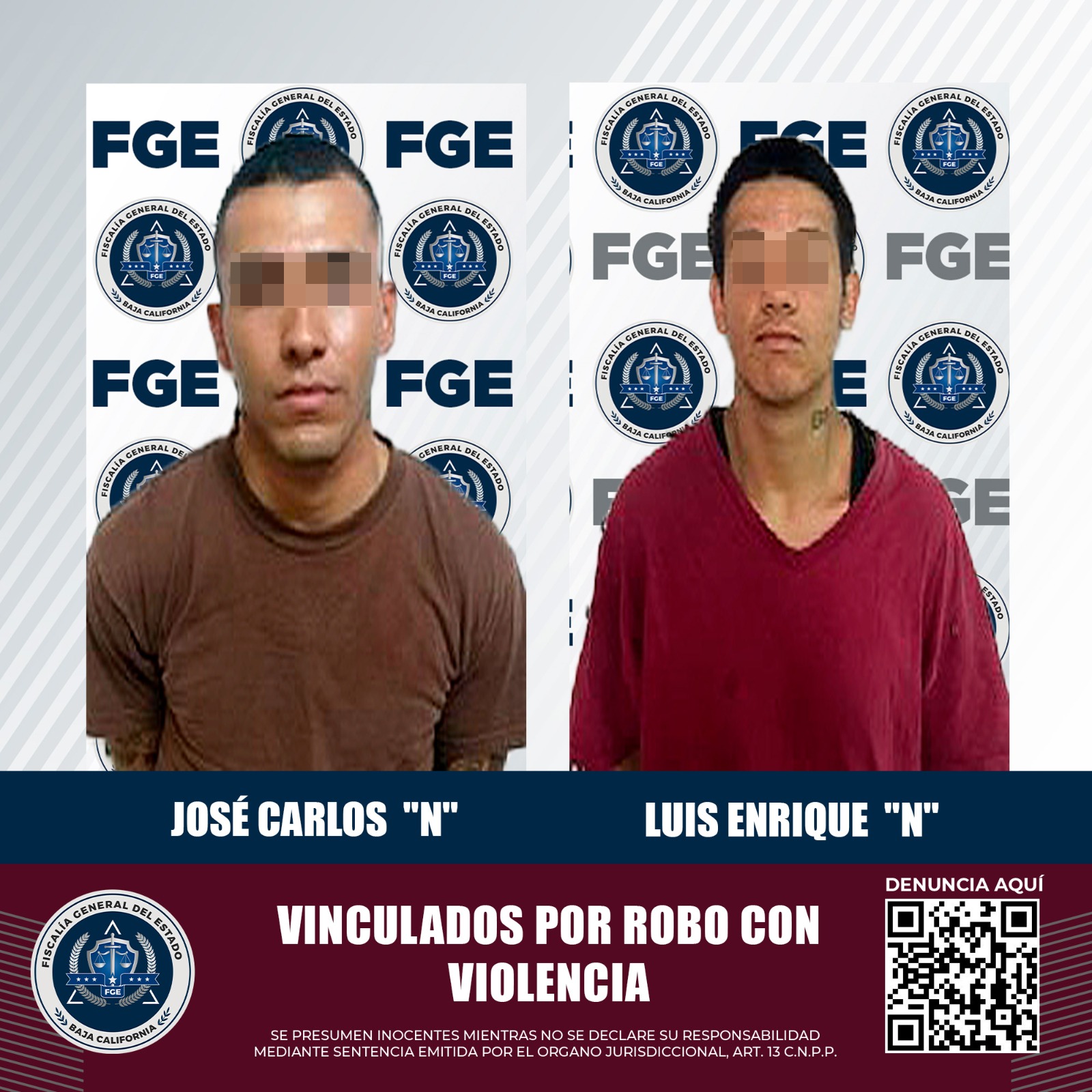 MEXICALI, BAJA CALIFORNIA. - Con base al trabajo de investigación, la Fiscalía Regional de Mexicali, a través de las Unidades de Investigación de Robos Oriente y Detenidos Oriente, se logró la vinculación de dos hombres relacionados en robos con violencia en contra de farmacias.