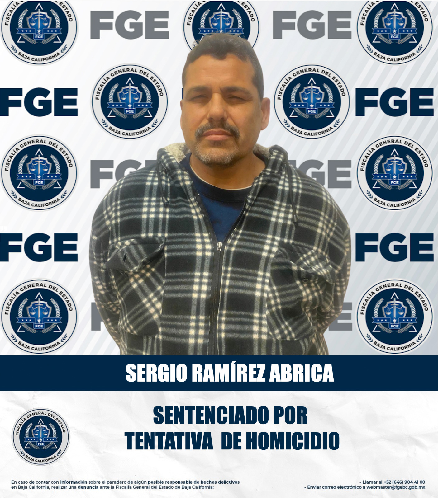 ENSENADA, BAJA CALIFORNIA. - La Fiscalía General del Estado, a través de la Fiscalía Especializada en Delitos Contra la Vida, informa que se obtuvo sentencia de 20 años de prisión en contra de Sergio Ramírez Abrica, por su responsabilidad penal en el delito de tentativa de homicidio, cometido en agravio de una mujer y un hombre.