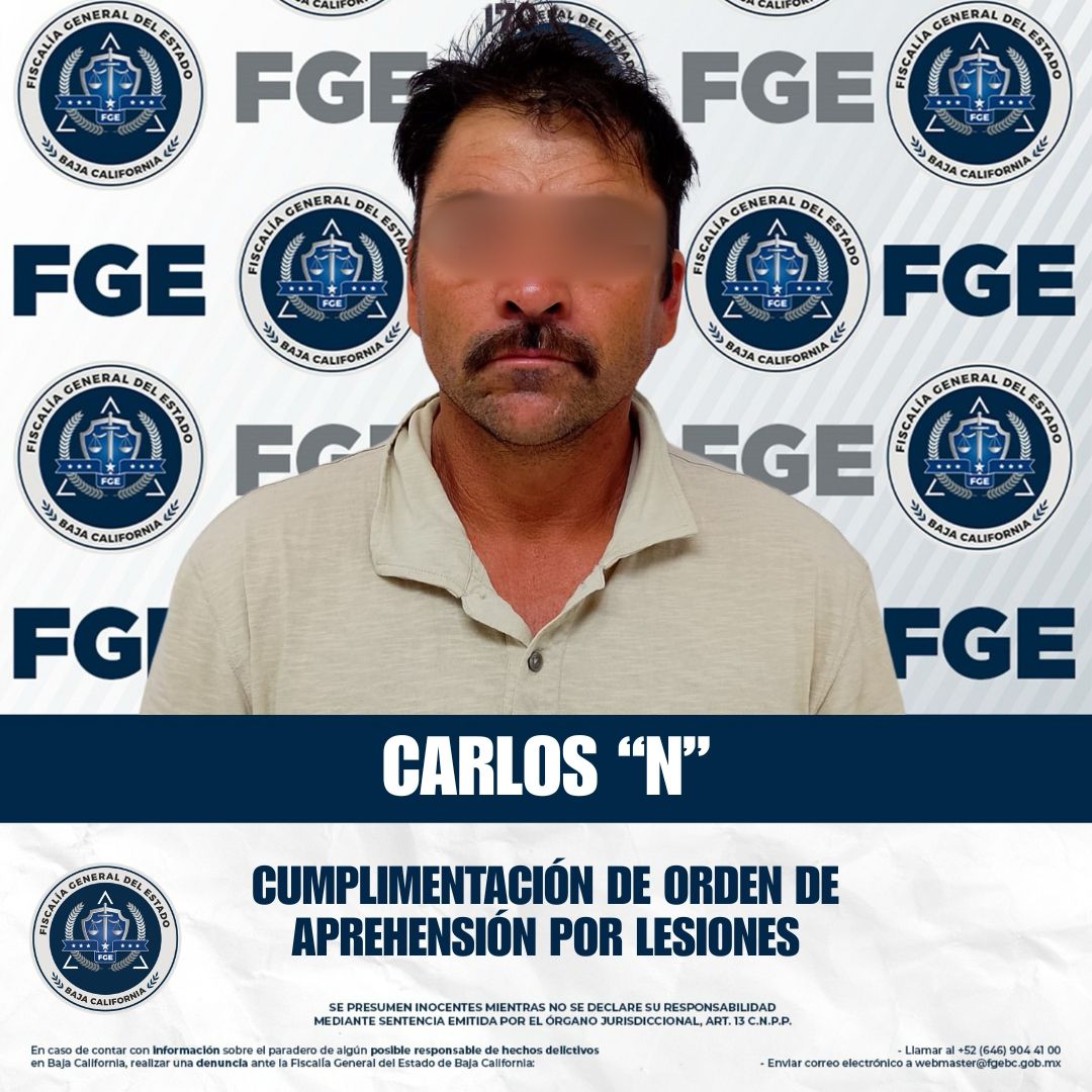 SAN QUINTÍN, BAJA CALIFORNIA. - Como parte del trabajo de investigación y seguimiento realizado por la Fiscalía General del Estado, oficiales de la Agencia Estatal de Investigación (AEI) detuvieron a un individuo en la colonia Reforma, en San Quintín, en cumplimiento de una orden de aprehensión por el delito de lesiones.