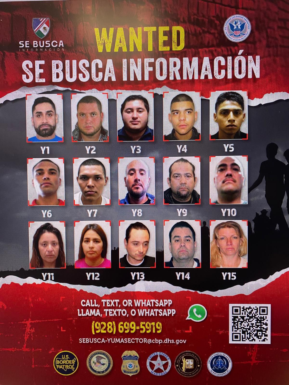 El programa binacional “Se Busca Información”, en el que participan autoridades de México y Estados Unidos, se llevó a cabo en San Luis, Arizona, donde se contó con la participación del coordinador de Gabinete de la Fiscalía General del Estado de Baja California, Lic. Juan Carlos Buenrostro Molina y el comandante de la Agencia Estatal de Investigación (AEI), Gustavo Olivo, con la finalidad de dar a conocer la identidad de 15 personas (12 hombres y 3 mujeres) presuntamente ligadas a organizaciones delictivas dedicadas al tráfico de personas, narcóticos y homicidios en ambos lados de la frontera.