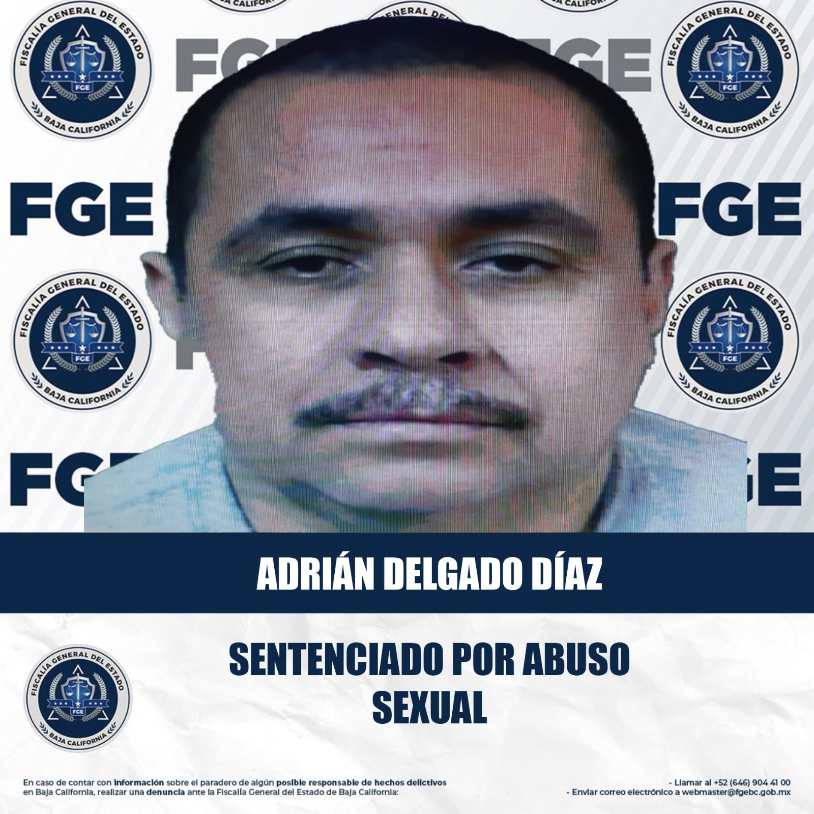 MEXICALI, BAJA CALIFORNIA. - La Fiscalía General del Estado, a través de la Fiscalía Especializada en Delitos Contra Mujeres por Razón de Género, obtuvo sentencia condenatoria contra Adrián Delgado Díaz, declarado culpable del delito de abuso sexual agravado en perjuicio de una menor de 14 años.