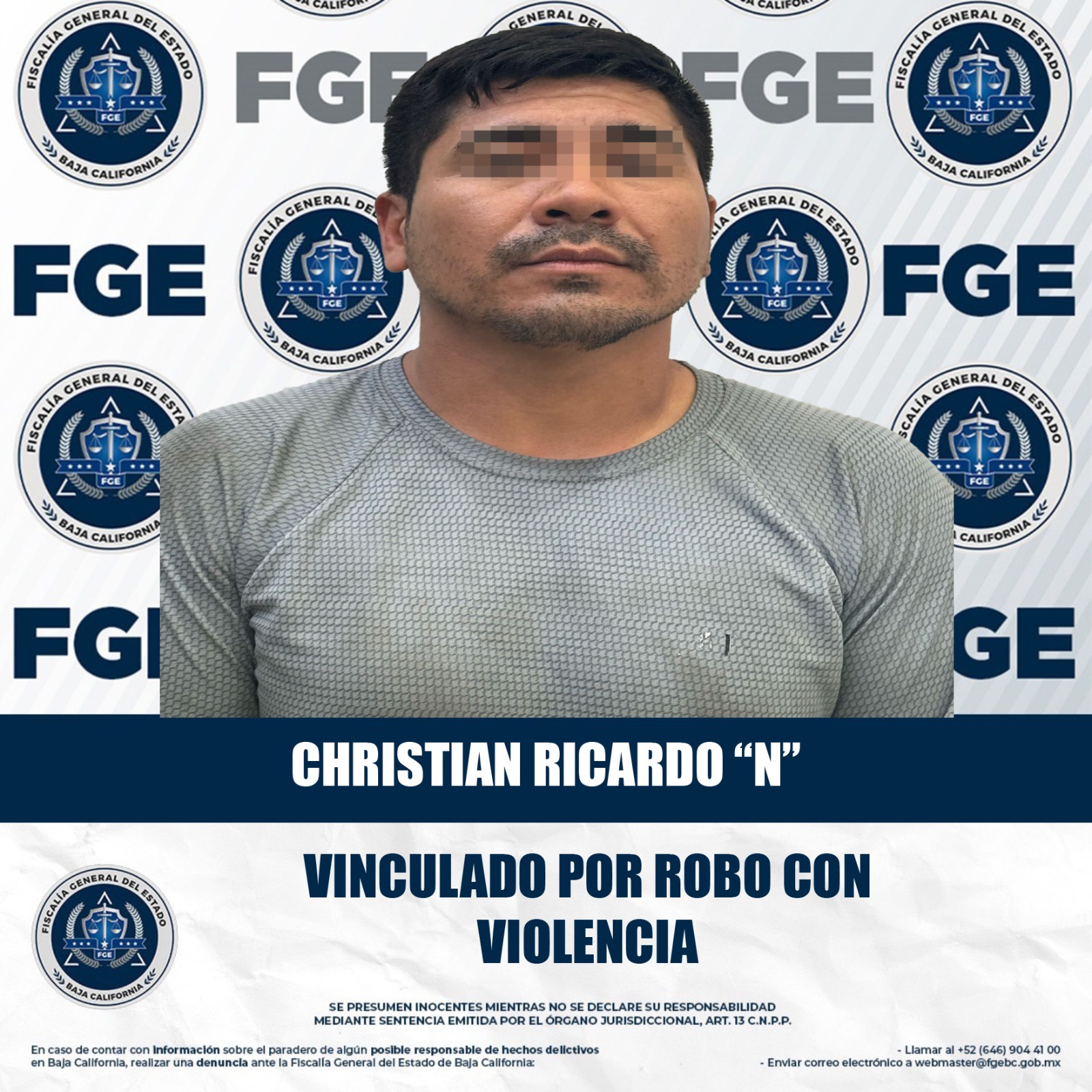 MEXICALI, BAJA CALIFORNIA. - La Fiscalía Regional de Mexicali, en el marco de su labor de combate al delito de robo en todas sus modalidades, obtuvo la vinculación a proceso de un joven implicado en el robo con violencia a una cooperativa escolar.