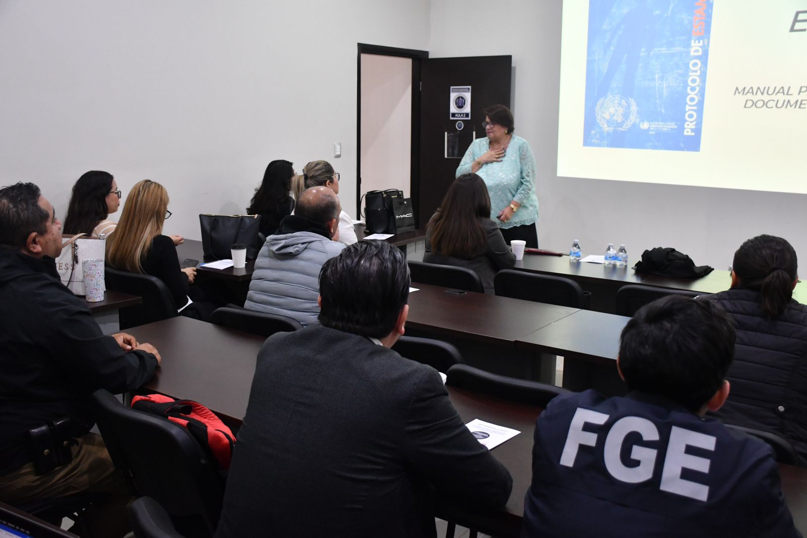 De manera simultánea, en Baja California, se dio inicio a una serie de acciones informativas organizadas por esta Fiscalía Especializada. Entre ellas, destaca una plática impartida en el Instituto Estatal de Investigación y Formación Interdisciplinaria, dirigida a Ministerios Públicos, auxiliares y Agentes Estatales de Investigación, con el objetivo de dotarles de herramientas e instrumentos jurídicos nacionales e internacionales para la adecuada atención e investigación de estos delitos.