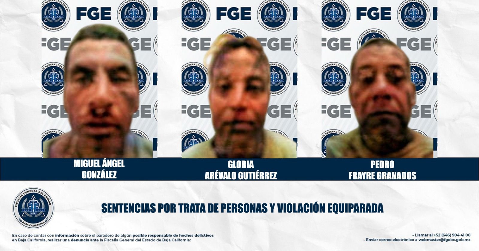 TIJUANA, BAJA CALIFORNIA. - La Fiscalía Regional de Tijuana informó que, derivado del trabajo realizado por la Coordinación de Averiguaciones Previas y Control de Proceso, se logró que fueran sentenciadas tres personas acusadas de los delitos de trata de personas en la modalidad de explotación sexual agravada y violación equiparada.