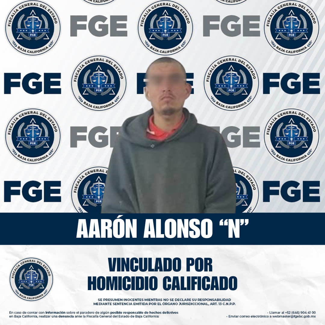 ENSENADA, BAJA CALIFORNIA. - La Fiscalía General del Estado, a través de la Fiscalía Especializada en Delitos Contra la Vida, obtuvo la vinculación a proceso de Aarón Alonso “N” por el delito de homicidio calificado cometido con ventaja, tras presentar datos de prueba sólidos ante el Juez de Control.