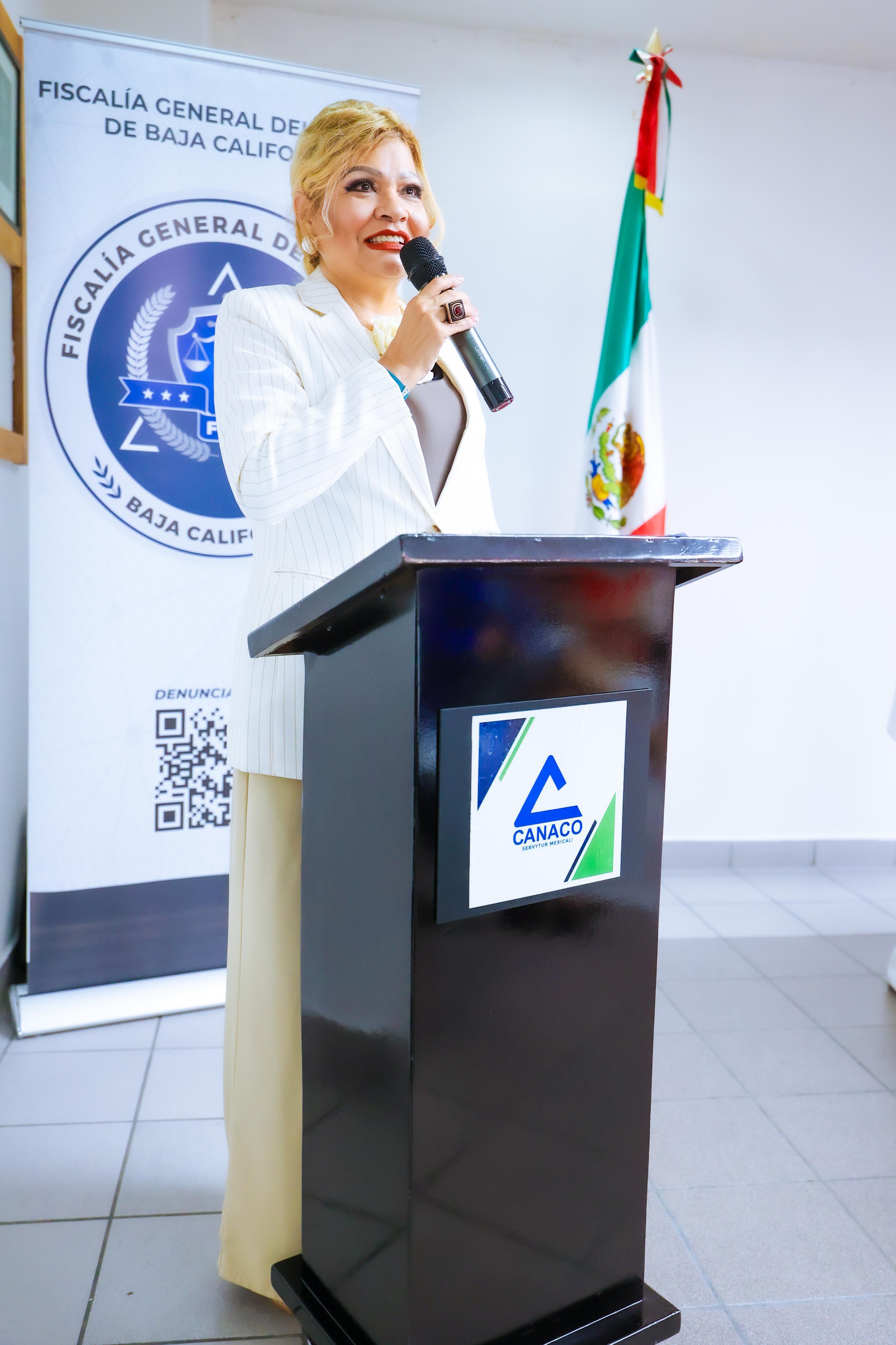 Durante su intervención, la Dra. Andrade Ramírez reiteró su compromiso de acercar la procuración de justicia a la población mediante estrategias como el programa Fiscal Enlace Contigo y el Centro de Atención Tecnológica, consolidando alianzas con sectores productivos para generar entornos más seguros y confiables.