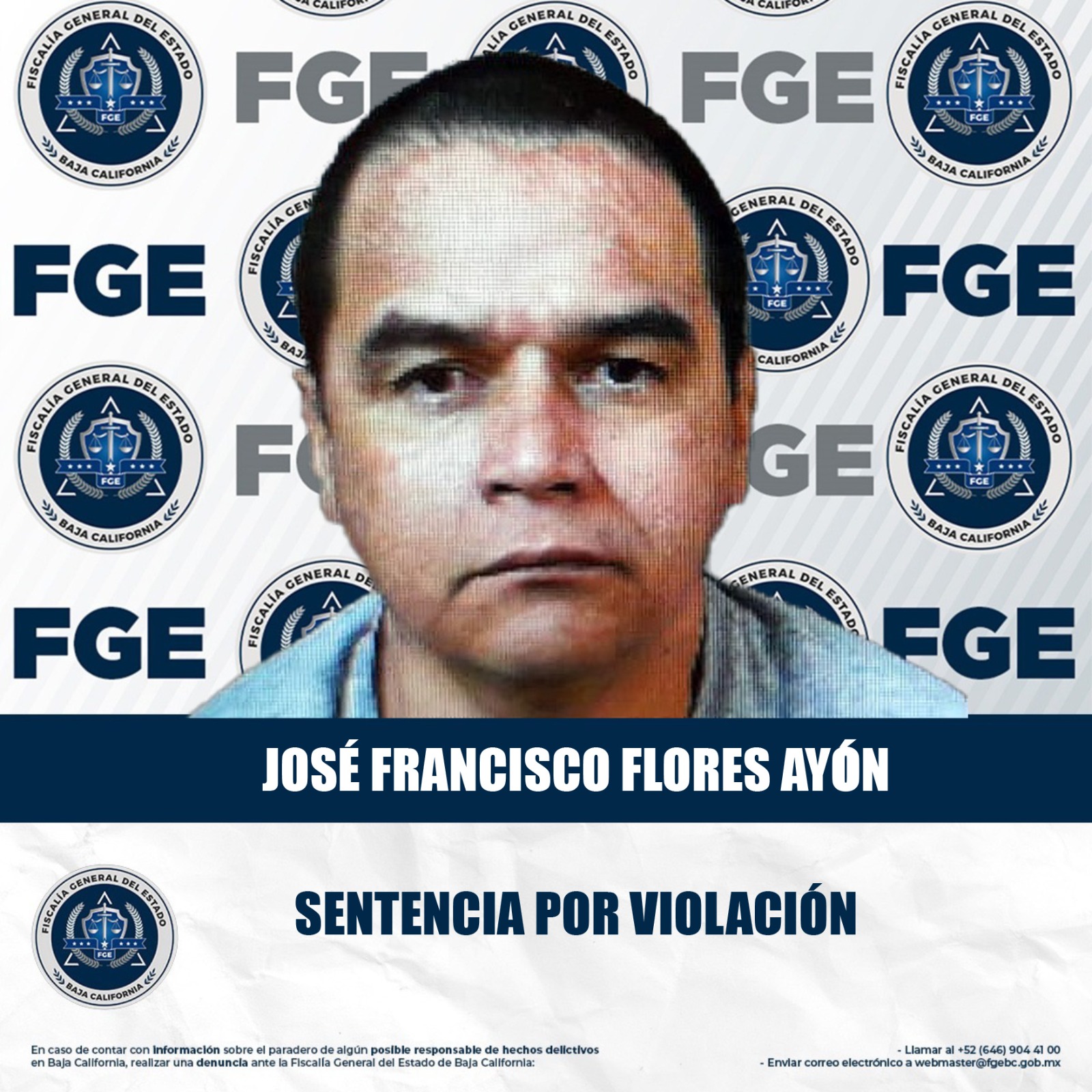 MEXICALI, BAJA CALIFORNIA. - La Fiscalía General del Estado de Baja California (FGE), a través de la Fiscalía Especializada en Delitos Contra Mujeres por Razón de Género, obtuvo una sentencia condenatoria de 10 años de prisión en contra de José Francisco Flores Ayón, por el delito de violación.