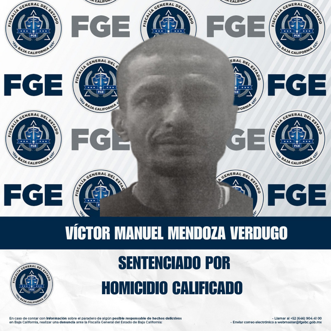 ENSENADA, BAJA CALIFORNIA. - La Fiscalía General del Estado, a través de la Fiscalía Especializada en Delitos Contra la Vida, obtuvo una sentencia condenatoria de 30 años de prisión contra Víctor Manuel Mendoza Verdugo, alias "El Neck", tras ser declarado penalmente responsable del delito de homicidio calificado con premeditación, ventaja y alevosía.