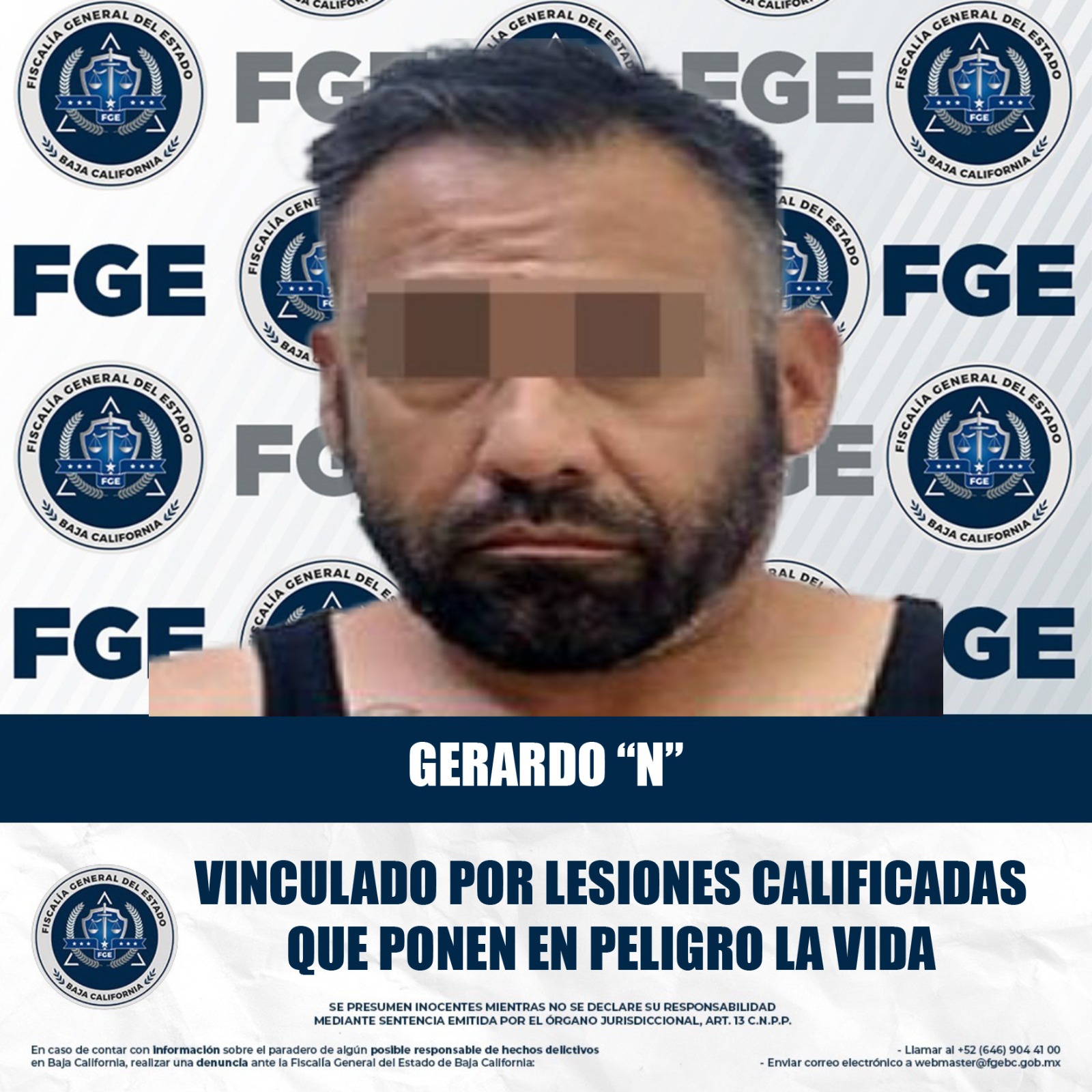 MEXICALI, BAJA CALIFORNIA. - Como resultado de la correcta integración de la carpeta de investigación, la Fiscalía Regional de Mexicali, a través de la Unidad de Investigación de Delitos con Detenidos Poniente, obtuvo la vinculación a proceso de Gerardo “N”, acusado del delito de lesiones calificadas que ponen en peligro la vida.