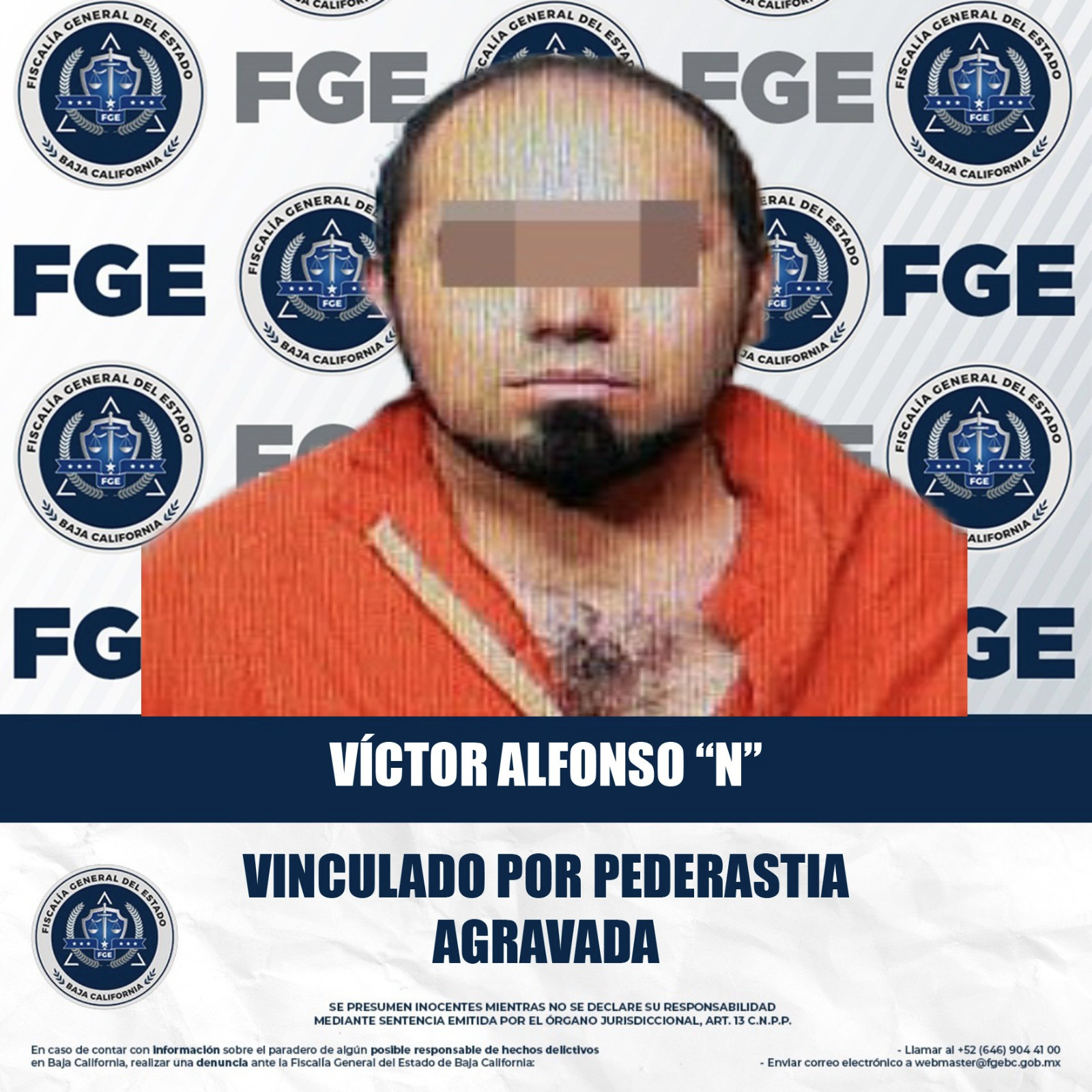 MEXICALI, BAJA CALIFORNIA. - La Fiscalía General del Estado obtuvo auto de vinculación a proceso en contra de Víctor Alfonso “N”, señalado por el delito de pederastia agravada, ilícito cometido en perjuicio de una menor.
