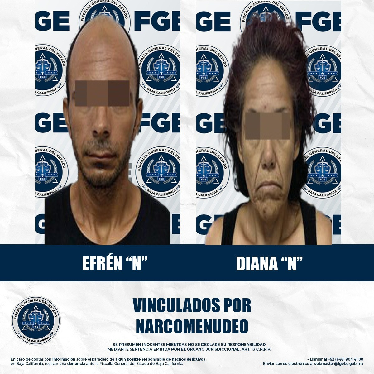 MEXICALI, BAJA CALIFORNIA. - La Fiscalía General del Estado, a través de la Fiscalía Especializada en Narcomenudeo, logró la vinculación a proceso de un hombre y una mujer por delitos contra la salud, en la modalidad de posesión simple del psicotrópico conocido como metanfetamina.