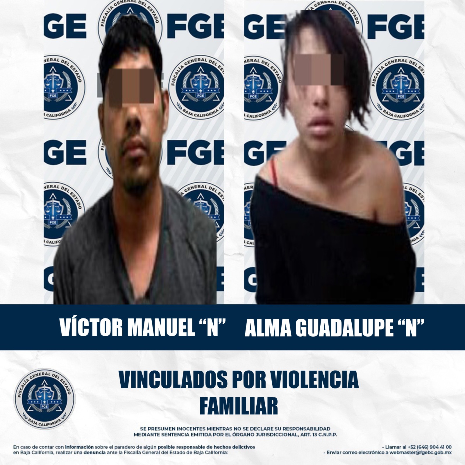 MEXICALI, BAJA CALIFORNIA. - Con base en los elementos de prueba presentados, la Fiscalía Regional de Mexicali, a través de la Unidad de Investigación con Detenidos Poniente, obtuvo la vinculación a proceso de un hombre y una mujer acusados del delito de violencia familiar.