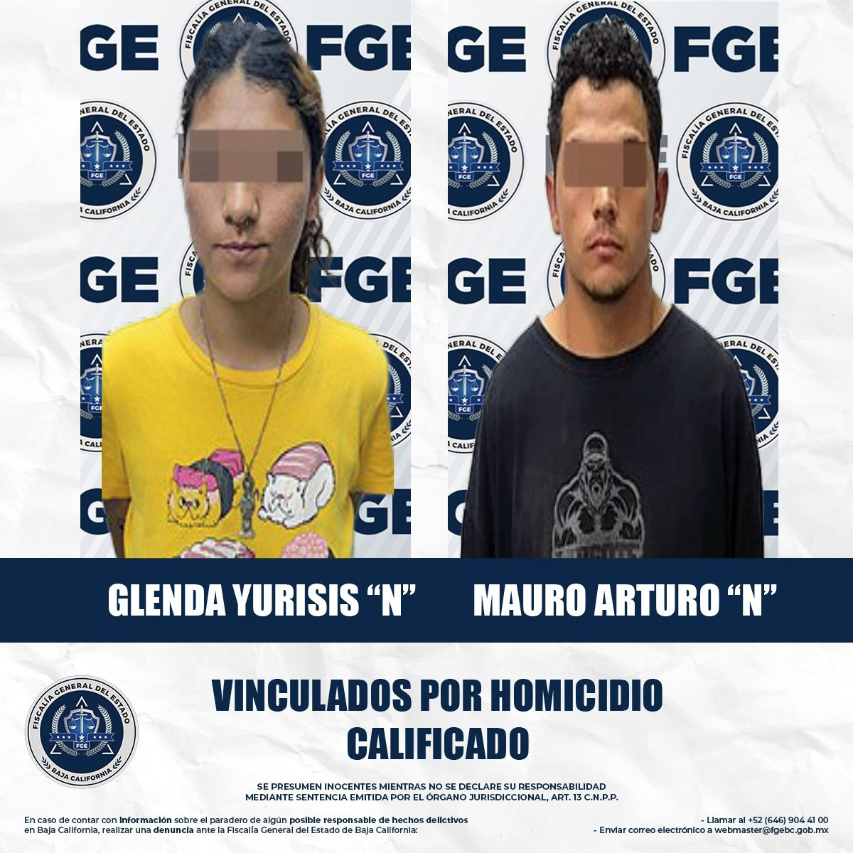 MEXICALI, BAJA CALIFORNIA. - La Fiscalía General del Estado (FGE) informó que, como resultado de las investigaciones realizadas por la Fiscalía Especializada en Delitos Contra la Vida, se logró la vinculación a proceso de Mauro Arturo “N” y Glenda Yurisis “N”, señalados como responsables del homicidio calificado de un hombre en el poblado Palo Verde, ocurrido el pasado 5 de mayo del presente año.