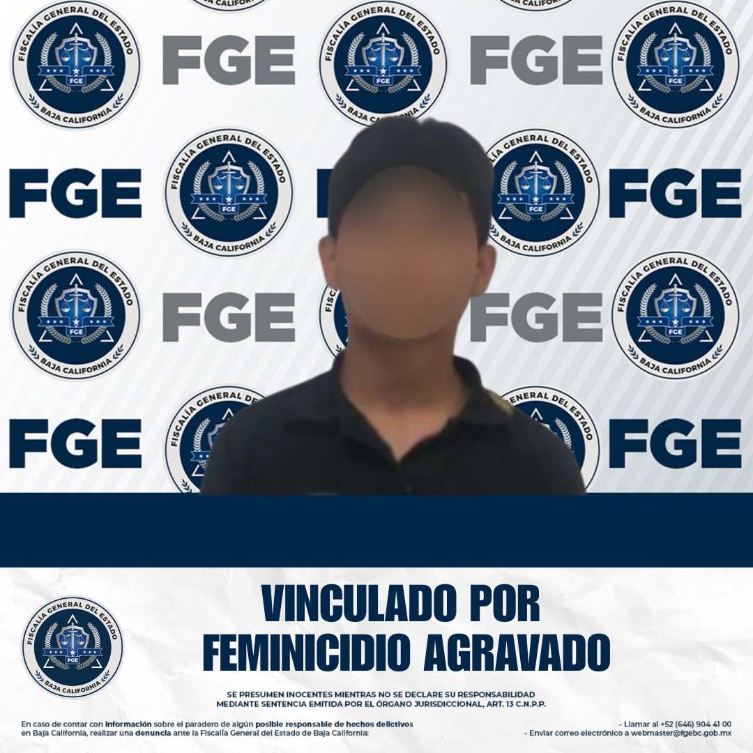 SAN QUINTÍN, BAJA CALIFORNIA. - Gracias a la labor de investigación realizada por la Agencia Estatal de Investigación y la Fiscalía Especializada en Adolescentes, la Fiscalía General del Estado obtuvo la vinculación a proceso de un adolescente de 16 años, por su probable responsabilidad en el feminicidio agravado de una menor de 13 años, ocurrido en El Rosario, municipio de San Quintín.