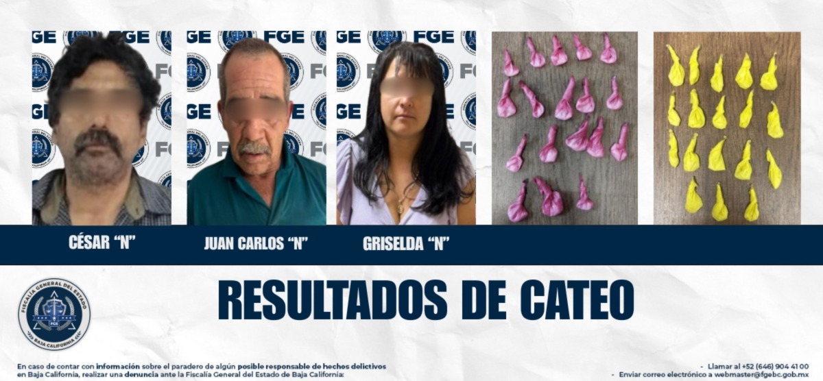 ENSENADA, BAJA CALIFORNIA. - Como parte de las acciones estratégicas para combatir el narcomenudeo, la Fiscalía Especializada en Narcomenudeo, en coordinación con agentes de la Agencia Estatal de Investigación (AEI), ejecutó dos cateos en distintos puntos de la ciudad de Ensenada, logrando la detención de tres personas y el aseguramiento de droga e inmuebles.