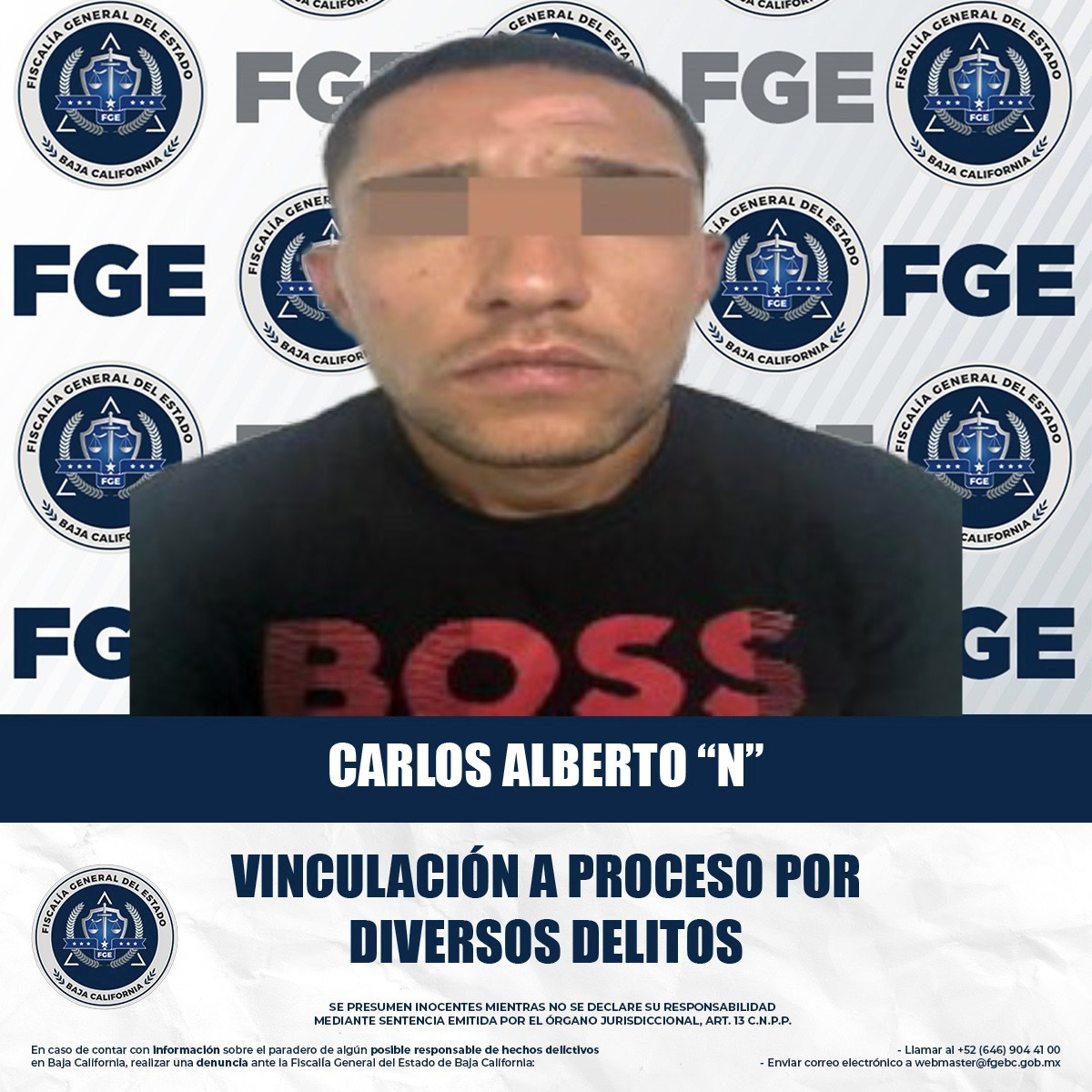 MEXICALI, BAJA CALIFORNIA - La Fiscalía Regional de Mexicali logró la vinculación a proceso de Carlos Alberto “N”, señalado por su presunta participación en delitos de robo a casa habitación con violencia, robo equiparado de vehículo en su modalidad de uso, daño en propiedad ajena y robo de vehículo.