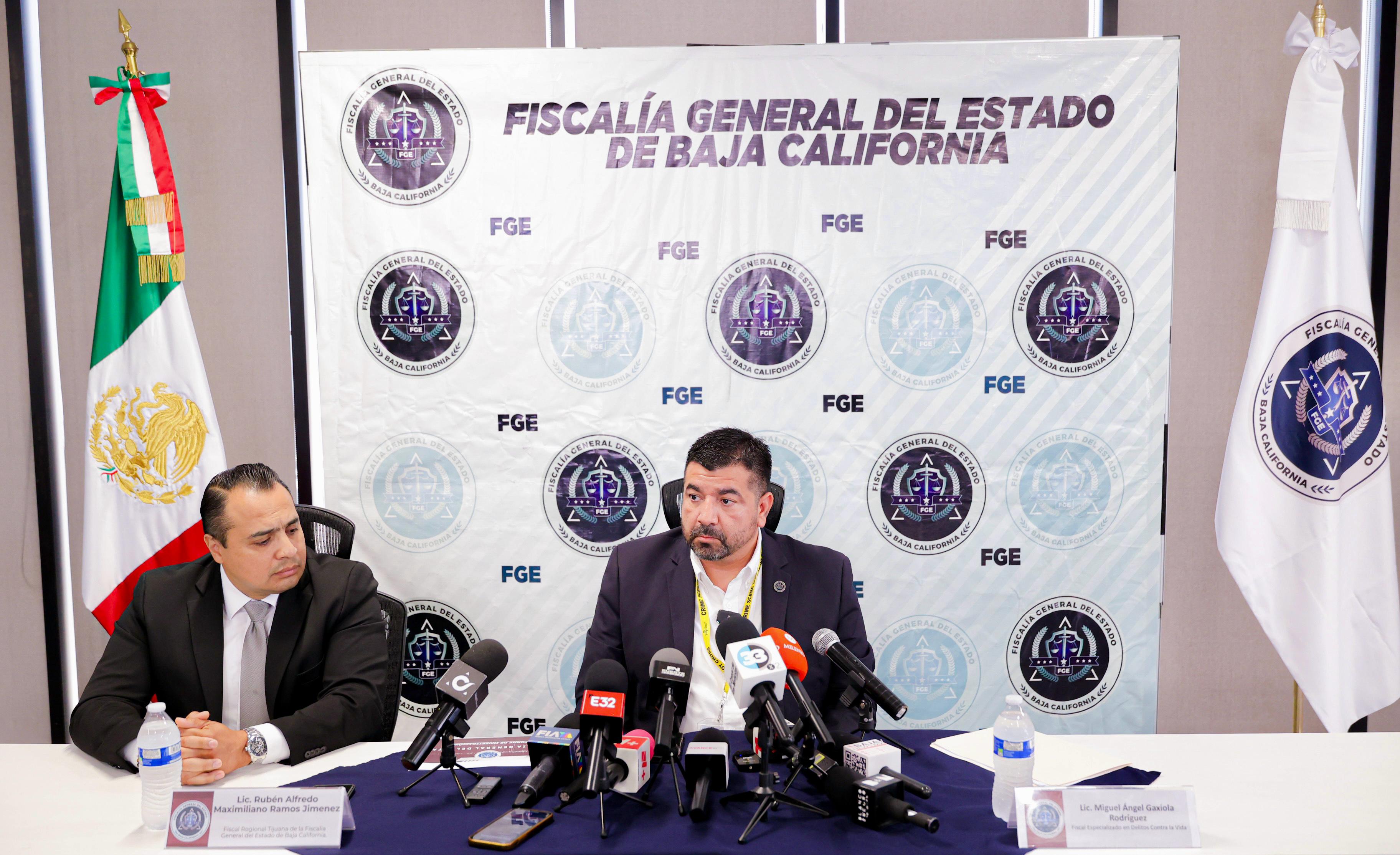 TIJUANA, BAJA CALIFORNIA. - La Fiscalía General del Estado (FGE) llevó a cabo una conferencia de prensa encabezada por el Fiscal Regional de Tijuana, Maximiliano Ramos Jiménez, y el Fiscal Especializado en Delitos Contra la Vida, Miguel Ángel Gaxiola. Durante el evento se dieron a conocer importantes avances en investigaciones relacionadas con delitos de alto impacto ocurridos en esta ciudad, destacando detenciones relevantes derivadas de labores coordinadas de inteligencia e investigación.