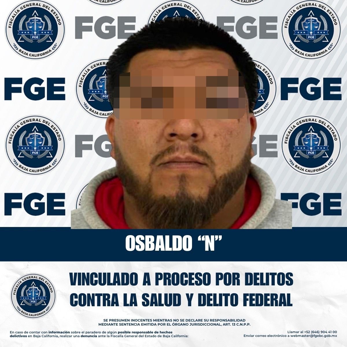 TECATE, BAJA CALIFORNIA. - La Fiscalía Regional de Tecate, a cargo del Lic. Genero Adrián Guzmán García, informa que, como resultado de las labores conjuntas de la Agencia Estatal de Investigación y la Unidad de Investigación de Delitos con Detenido, se obtuvo la captura y posteriormente vinculación a proceso de Osbaldo “N” por delitos contra la salud en su modalidad de narcomenudeo (variante de posesión de metanfetamina), así como por el delito federal de portación de arma de fuego de uso exclusivo del Ejército, la Armada y la Fuerza Aérea.