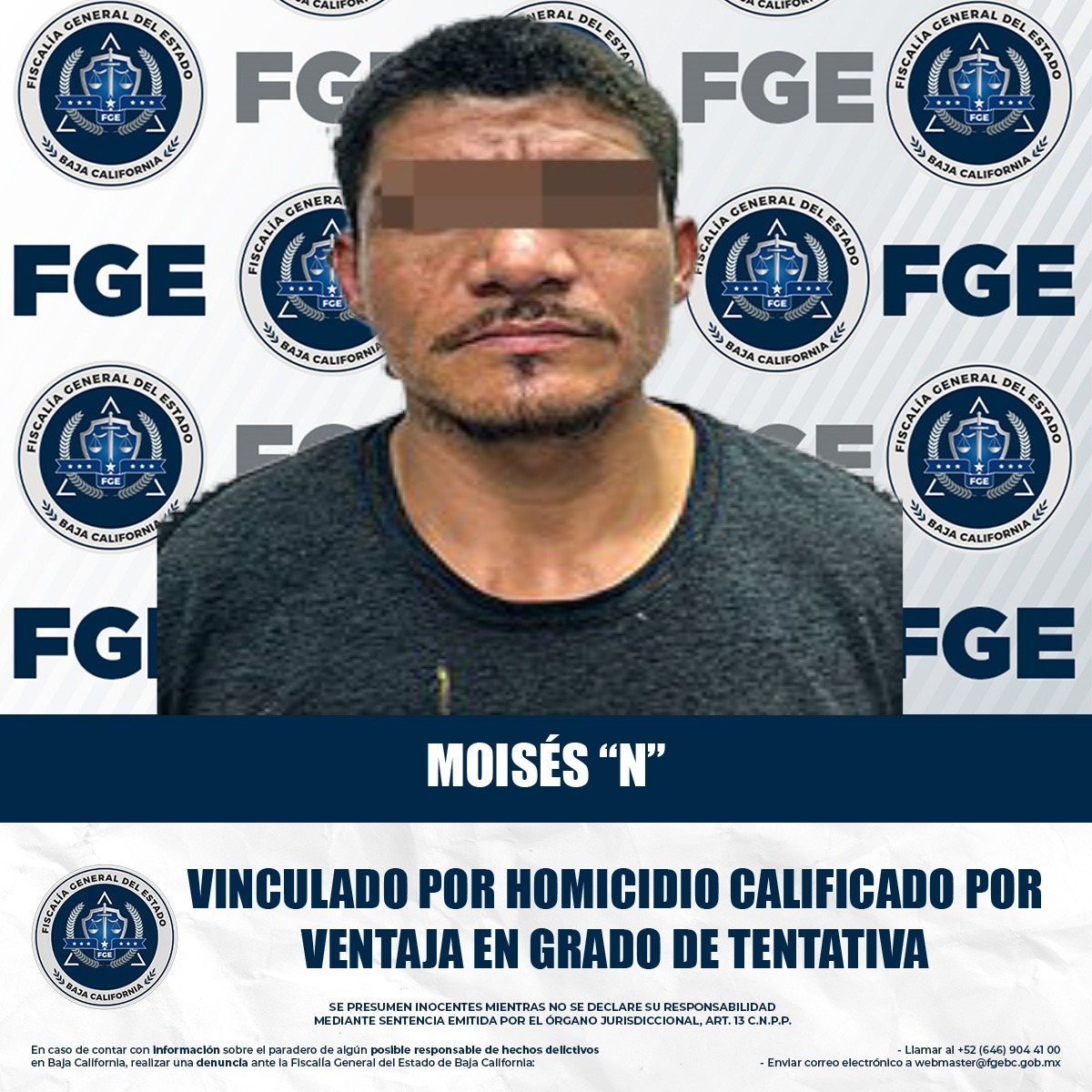 MEXICALI, BAJA CALIFORNIA. - La Fiscalía General del Estado, a través de la Fiscalía Especializada en Delitos Contra la Vida, obtuvo la vinculación a proceso de Moises “N”, por su presunta participación en el delito de homicidio calificado por ventaja en grado de tentativa.