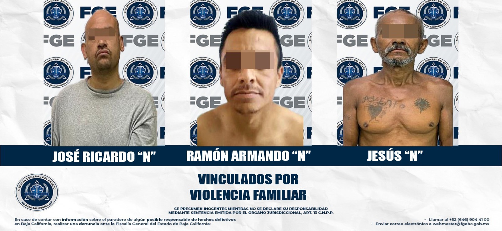 MEXICALI, BAJA CALIFORNIA. - La Fiscalía Regional de Mexicali, a través de las Unidades de Investigación de Delitos Foránea Guadalupe Victoria y Ciudad Morelos, obtuvo la vinculación a proceso de tres individuos por su presunta participación en el delito de violencia familiar.