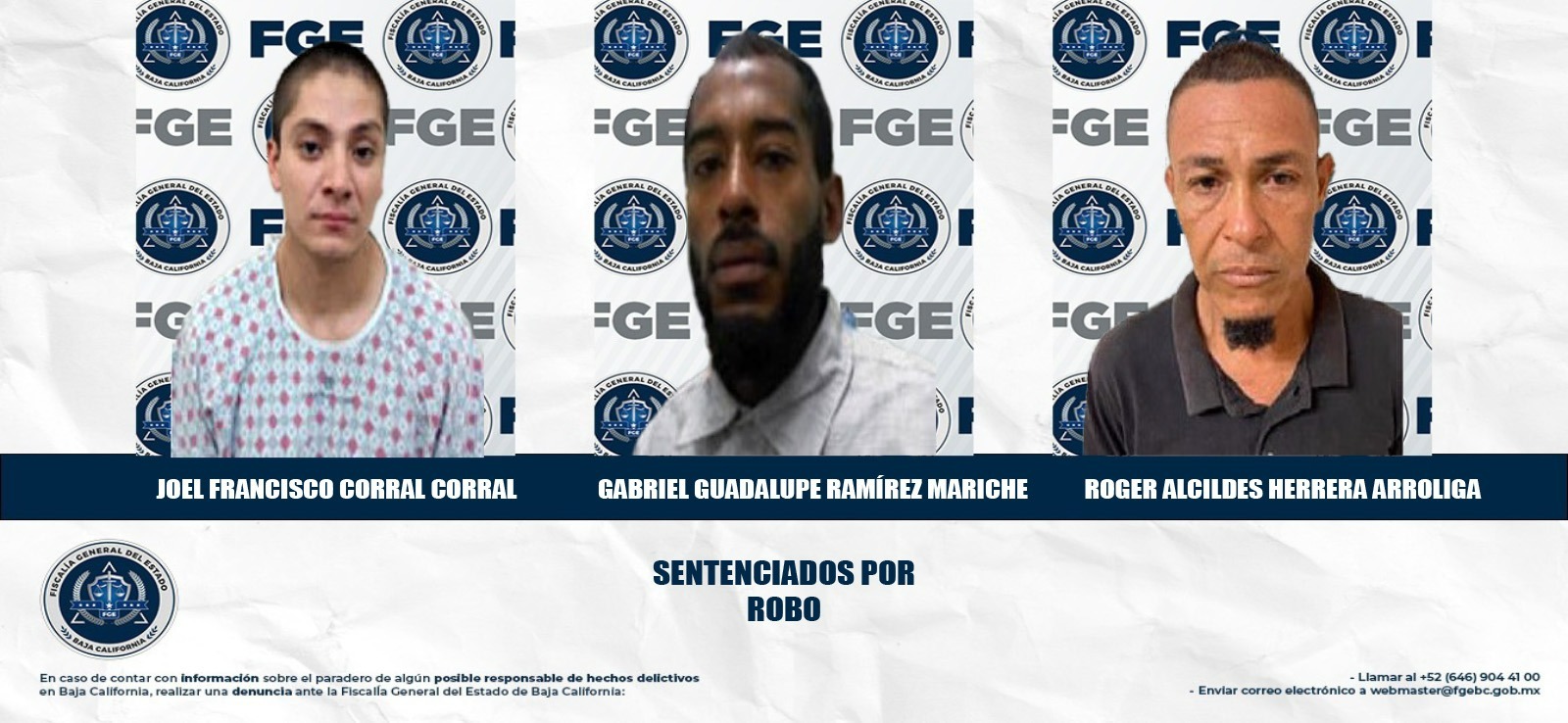 MEXICALI, BAJA CALIFORNIA. - La Fiscalía Regional de Mexicali logró sentencias condenatorias contra tres personas por su responsabilidad en delitos de robo calificado con violencia, cometidos en distintos hechos ocurridos en establecimientos comerciales y un domicilio particular.