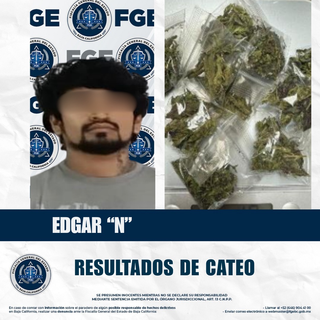 En el interior del domicilio inspeccionado fue localizado Edgar “N”, quien fue detenido tras encontrarse en posesión de 10 envoltorios de plástico que contenían hierba verde y seca, con características propias de la marihuana.