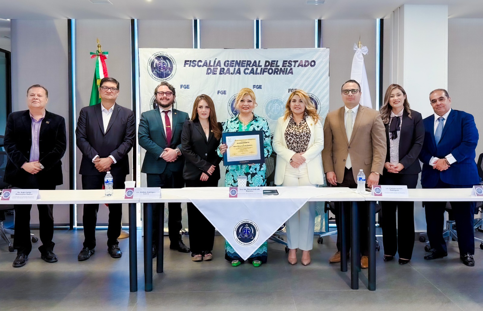 Acompañaron a la Fiscal General en esta reunión, Mtro. Juan Carlos Buenrostro Molina, Coordinador de Gabinete de la Fiscalía General del Estado; Lic. Rubén Alfredo Maximiliano Ramos Jiménez, Fiscal Regional de Tijuana; Lic. Viviana Lozoya Rodríguez, Presidenta del Colegio de Abogados Constitucionalistas; Lic. Andrés Rodríguez García, integrante del Colegio; Además de invitados especiales, quienes participaron activamente en el intercambio de ideas y propuestas.