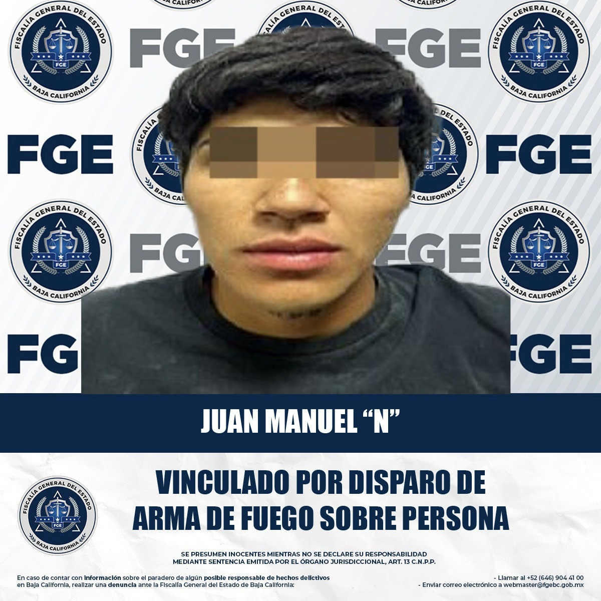 MEXICALI, BAJA CALIFORNIA. - La Fiscalía Regional de Mexicali, a través de la Unidad de Investigación de Delitos Contra las Personas y su Libertad, vinculó a proceso a un joven por los delitos de disparos de arma de fuego contra personas o grupo de ellas.