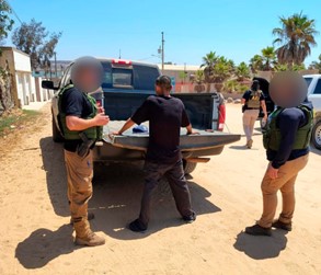 SAN QUINTÍN, BAJA CALIFORNIA. - La Fiscalía General del Estado (FGE), a través de la Agencia Estatal de Investigación (AEI) de la zona de San Quintín, realizó un operativo enfocado en el seguimiento de investigaciones por robo de vehículo y órdenes de aprehensión, el cual derivó en la detención en flagrancia de un hombre por portación de arma prohibida.
