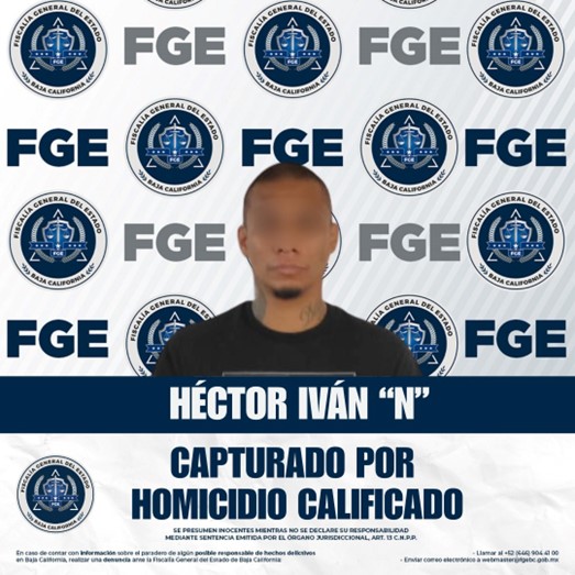 ENSENADA, BAJA CALIFORNIA. - La Fiscalía General del Estado de Baja California, a través de la Agencia Estatal de Investigación (AEI), en coordinación con agentes de la Fiscalía General del Estado de Nayarit, logró la detención de Héctor Iván “N”, de 28 años de edad, por su probable responsabilidad en el delito de homicidio calificado cometido con ventaja.